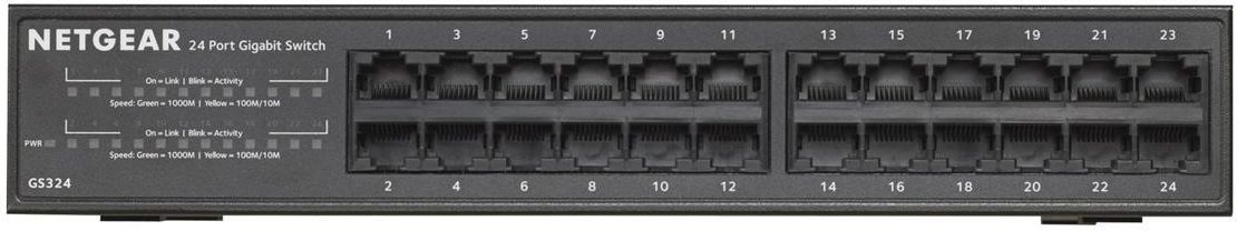 NETGEAR GS324 Nie zarządzany Gigabit Ethernet (10/100/1000) Czarny NETGEAR GS324. Typ przełącznika: Nie zarządzany. Podstawowe przełączania Ethernet RJ-45 porty typ: Gigabit Ethernet (10/100/1000), Podstawowe przełączanie RJ-45 Liczba portów Ethernet: 24. Wielkość tabeli adresów: 8000 wejścia, …