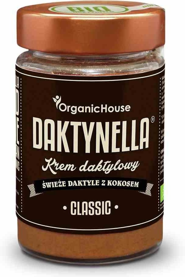 Organic House Daktynella Classic Bio 190g Krem daktylowy Organic House Daktynella Classic to doskonały wybór dla osób pragnących połączyć zdrowie z przyjemnością smakowania. Zdrowa żywność odgrywa kluczową rolę w codziennej diecie, a ten produkt, dzięki swojemu naturalnemu składowi, dostarcza organizmowi niezbędnych składników odżywczych. Wybierając krem daktylowy, zyskujesz pewność, że sięgasz po produkt wolny od sztucznych dodatków i konserwantów. Skład Krem daktylowy wyróżnia się prostym i naturalnym składem, który jest w pełni ekologiczny. Jego głównymi składnikami są: Ekstrakt z kokosa BIO (57%) – dodaje delikatnego smaku i aromatu, Świeże daktyle Medjool BIO (37%) – dostarczają naturalnej słodyczy oraz cennych składników odżywczych, Kakao BIO o obniżonej zawartości tłuszczu – wzbogaca smak i kolor, Nierafinowany olej kokosowy BIO tłoczony na zimno – wspiera zdrowie dzięki swoim właściwościom. Produkt jest w 100% wolny od konserwantów, barwników, utwardzaczy, emulgatorów, a także nie zawiera dodatku cukru, soli ani oleju palmowego. To oznacza, że każdy może cieszyć się pysznym smakiem bez obaw o zdrowie. Wartości odżywcze Krem daktylowy ma korzystny profil wartości odżywczych. W 100 g produktu znajdują się: Wartość energetyczna: 267 kcal, Tłuszcz całkowity: 17,34 g (w tym kwasy tłuszczowe nasycone: 16,12 g), Węglowodany: 21,76 g (w tym cukry: 17,50 g), Błonnik: 5,56 g, Białko: 3,22 g, Sól: Dzięki wysokiej zawartości błonnika, produkt wspiera prawidłowe funkcjonowanie układu trawiennego, co jest kluczowe dla zdrowia. Regularne spożywanie tego kremu może przyczynić się do poprawy ogólnego samopoczucia. Certyfikaty i etykiety Daktynella Classic posiada istotne certyfikaty, które potwierdzają jakość oraz pochodzenie składników: Certyfikat BIO – gwarantuje, że składniki pochodzą z certyfikowanych upraw ekologicznych, bez użycia pestycydów i GMO, Oznaczenie bezglutenowe – idealna dla osób z nietolerancją glutenu, Wegańska – produkt nie zawiera składników pochodzenia zwierzęcego. Te informacje zwiększają zaufanie konsumentów oraz pomagają podejmować świadome decyzje zakupowe. Zastosowanie w diecie i stylu życia Krem od Organic House jest wszechstronny i może być stosowany w różnych dietach oraz stylach życia. Oto kilka pomysłów na jego wykorzystanie: Na śniadanie: jako dodatek do naleśników, gofrów lub płatków, W przekąskach: z orzechami, ziarnami lub jogurtem naturalnym, Na deser: jako polewa na ciepłych owocach lub ciastach, Z pieczywem: idealny do kanapek jako alternatywa dla dżemów. Zalety produktu Krem daktylowy Organic House ma wiele zalet, które przemawiają na jego korzyść: Naturalny skład – brak sztucznych dodatków i konserwantów, Ekologiczne pochodzenie – certyfikaty BIO potwierdzają jakość składników, Wysoka zawartość błonnika – wspiera zdrowe trawienie, Wszechstronność – można go wykorzystać w różnych daniach i przekąskach, Odpowiedni dla wegan i osób z nietolerancją glutenu – dostosowany do różnych potrzeb żywieniowych. Pojemność produktu Krem daktylowy Daktynella Classic dostępny jest w poręcznej pojemności 190 g, co sprawia, że jest to idealny wybór zarówno do domowego użytku, jak i do zabrania w podróż. Dzięki temu można cieszyć się zdrowym smakiem w dowolnym miejscu i czasie.