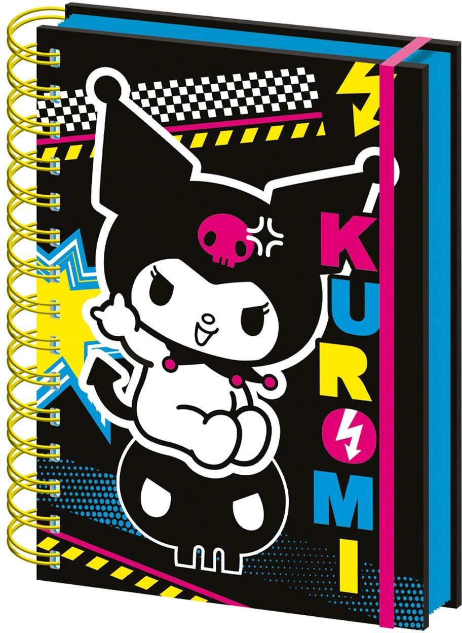 Notes A5 Kuromi Punk Vibes - kołozeszyt Stylowy notes A5 z postacią Kuromi w punkowym stylu! Twarda oprawa, sprężysty grzbiet i gumka zamykająca sprawiają, że jest idealny do codziennego użytku. Wyraziste kolory i dynamiczny design to must-have dla fanów Sanrio. Szczegóły techniczne: Format: A5 Okładka: twarda Grzbiet: spiralny Zamykanie: gumka Licencjonowany produkt Sanrio.