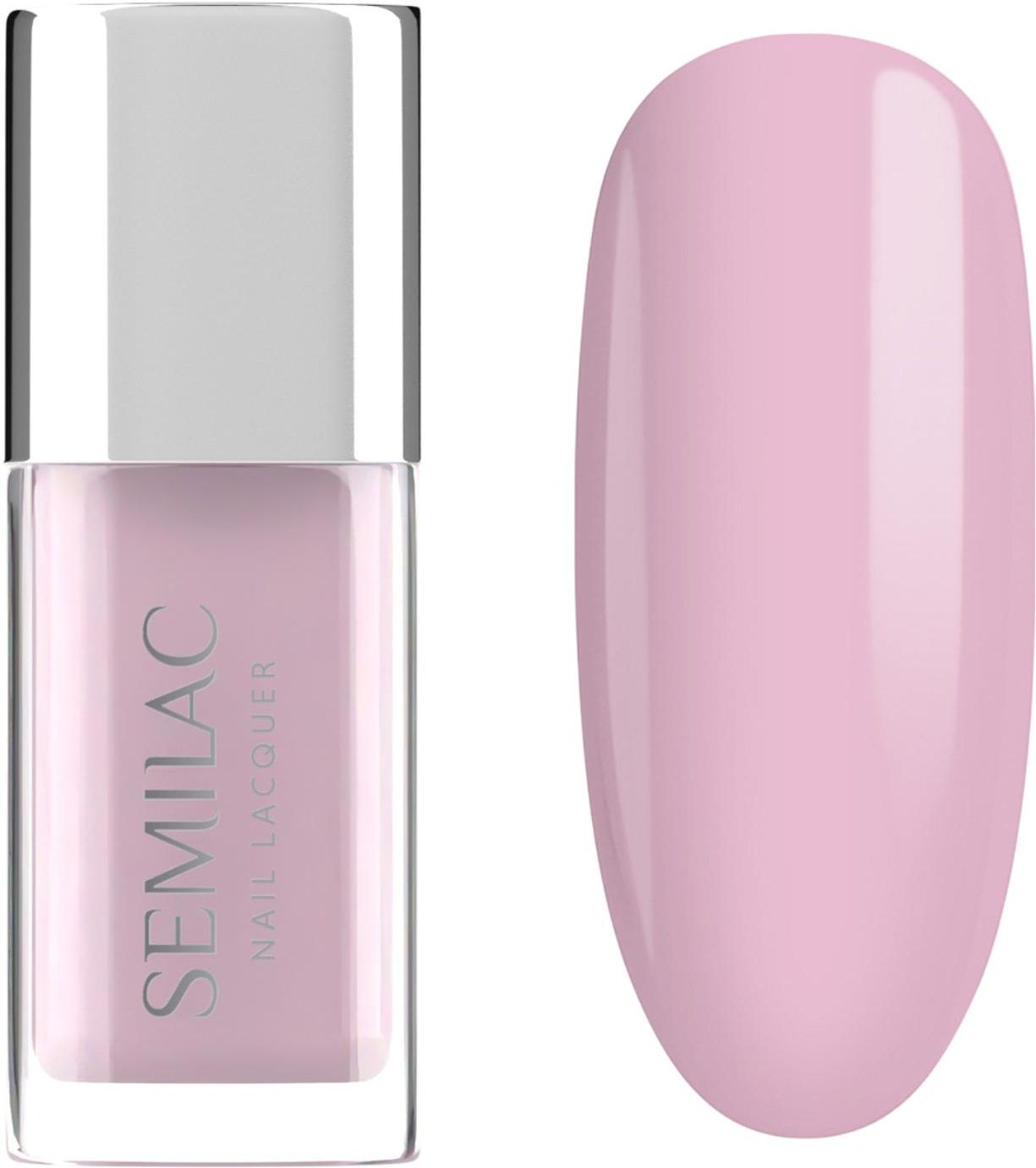 Energetyczny, półprzezroczysty róż, który natychmiast ożywia naturalną płytkę paznokcia, nadając jej świeży, promienny wygląd. Jego intensywny, ale lekki odcień buduje się warstwami – każda aplikacja wzmacnia różowy ton, zachowując przy tym naturalny charakter stylizacji. Paznokcie wyglądają na zdrowe, zadbane i pełne życia. To kolor dla tych, którzy chcą połączyć świeżość i intensywność z naturalnym, estetycznym wykończeniem – bez konieczności użycia lampy. Lakier wyrównuje koloryt, skutecznie maskuje drobne przebarwienia i niedoskonałości, a płytka staje się optycznie wygładzona i bardziej jednolita. Dzięki idealnie wyprofilowanemu pędzelkowi aplikacja jest szybka, precyzyjna i bez smug – wystarczą dwa pociągnięcia, by uzyskać efekt profesjonalnego manicure. Lakier szybko schnie, nie odbija się i nie „oddusza” się w trakcie noszenia, tworząc trwałą, błyszczącą taflę odporną na ścieranie i odpryski. Nowa linia Semilac Nail Lacquer to linia lakierów klasycznych o jakości premium, która zapewnia efekt jak po manicure hybrydowym – bez konieczności utwardzania w lampie. Szybkoschnąca formuła, intensywny połysk i perfekcyjnie dopracowany pędzelek gwarantują łatwą aplikację bez smug. Lakier tworzy trwałą, odporną taflę, która nie odpryskuje, nie ściera się i zachowuje estetyczny wygląd powyżej 8 dni. Właściwości: Naturalny połysk i profesjonalny wygląd – zapewnia estetyczny i zadbany manicure. Wzmacniające działanie – wspiera paznokcie z tendencją do łamliwości i rozdwajania. Łatwa i szybka aplikacja – ergonomiczny pędzelek umożliwia precyzyjne nałożenie lakieru bez smug. Trwałość i odporność – lakier odporny na ścieranie, odpryski i zarysowania przez ponad 8 dni. Formuła, która nie spływa na skórki. Błyskawiczne wysychanie – lakier nie mięknie i nie odkleja się od płytki. Formuła odporna na ścieranie i odpryskiwanie – bardziej trwała niż inne lakiery klasyczne. Łatwe usuwanie – zmywa się klasycznym zmywaczem bezacetonowym Semilac. Skład (INCI): Butyl Acetate, Ethyl Acetate, Nitrocellulose, Adipic Acid/Neopentyl Glycol/Trimellitic Anhydride Copolymer, Isopropyl Alcohol, Acetyl Tributyl Citrate, Dipropylene Glycol Dibenzoate, Acrylates Copolymer, Tosylamide/Epoxy Resin, Adipic Acid/Fumaric Acid/Phthalic Acid/Tricyclodecane Dimethanol Copolymer, Stearalkonium Bentonite, Silica, Benzotriazolyl Dodecyl p-Cresol, Dilauryl Thiodipropionate, Tocopheryl Acetate, Aqua, Alcohol, Phosphoric Acid, Tris(tetramethylhydroxypiperidinol) Citrate, Aluminum Hydroxide, Triethoxycaprylylsilane, Methicone, (+/-) CI 77891, CI 19140, CI 77499, CI 15880, CI 15850.