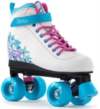 SFR Vision II są stylowe i wygodne wrotki dla początkujących dzieci. Wyższa cholewka zapewnia doskonałe wsparcie kostki bez ograniczania ruchu, a dodatkowy pasek mocujący na rzep utrzymuje stopę w miejscu. Dzięki subtelnej, ale stylowej grafice oraz kolorowym kółkom i stoperom - rolki SFR Vision II z pewnością wyróżnią Cię z tłumu! Dostępne w rozmiarze buta: od EU 32 do EU 37 Zaleca się, aby wybrać jeden rozmiar większy niż normalny rozmiar buta. Buty: High-Top | materiał: Semi-Soft Vinyl | bardzo stabilne, wsparcie kostki Plate: Nylon Hi-Impact | odporny na uderzenia Trucky: PU (kompozyt) Kółka: PU (kompozyt) | rozmiar: 53mm x 30mm Stopper: materiał: PU (kompozyt) | łatwy dostęp do śrub typu Bolt Maksymalna waga użytkownika: 60kg