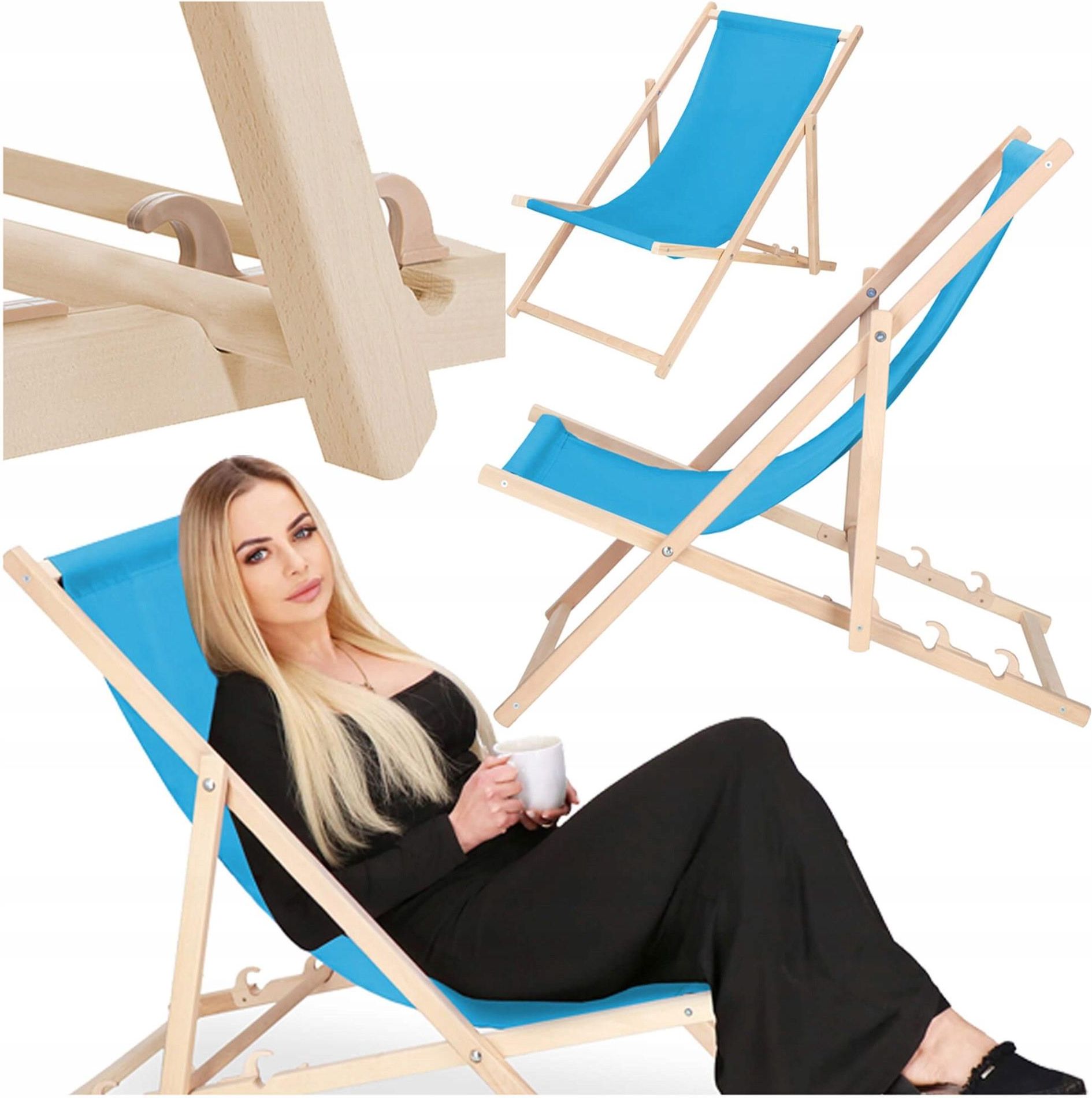 • DC0001BLUE1 LEŻAK DREWNIANY SKŁADANY