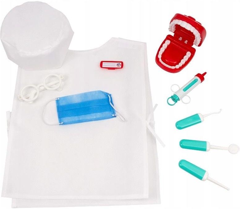 Twoje dziecko marzy o zostaniu lekarzem i pomaganiu innym? Czas, aby poznało nowy zawód – dentystę. Dzięki temu zabawkowemu zestawowi małego dentysty może przeprowadzać badania i leczyć zęby swoich ulubionych zabawek. Przestrzeganie wszystkich zasad higieny w gabinecie stomatologicznym będzie łatwe dzięki specjalnemu fartuchowi lekarskiemu, czapce i, co najważniejsze, masce ochronnej. Dzięki temu Twoje dziecko poczuje się jak prawdziwy lekarz. Wymiary zabawki: 30 ? 20 ? 8cm Kraj produkcji: UA