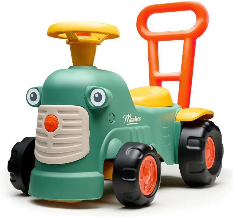 Maurice to uroczy traktorek francuskiej marki Falk, który będzie towarzyszem pierwszych kroków Twojego dziecka. Jasne kolory i zaokrąglone kształty zachwycą każdego malucha. Uruchamianie traktora za pomocą małego pokrętła dźwiękowego oraz dźwięk z klaksonu umieszczonego na kierownicy to wspaniała pierwsza nauka, która pobudzi umiejętności motoryczne i słuch Twojego dziecka. Jeżdżąc na jeździku, bawiąc się kierownicą z klaksonem i skrętnymi kołami dziecko będzie ćwiczyło koordynację i równowagę. Stojąc z tyłu, może korzystać z ergonomicznego oparcia, aby uczyć się chodzić przez zabawę, bez strachu i całkowicie bezpiecznie. Pod siedzeniem znajduje się niewielki schowek do przechowywania skarbów. Charakterystyka: - - od 12 miesiąca życia - - jeździk pełni również funkcję pchacza, wspomagając naukę chodzenia u dziecka - - jeździk z kierownicą - - posiada wygodne siedzenie ze schowkiem na drobiazgi - - oparcie z rączką do prowadzenia przez dziecko - - z przodu i z tyłu znajdują się specjalne wypustki uniemożliwiające wywrócenie się - - wysokość siodełka od podłogi - 23cm - - wysokość rączki do prowadzenia - 46cm - - jeździk wykonany w 80% z plastiku pochodzącego z recyklingu Falk jest czołowym europejskim producentem wysokiej jakości pojazdów na pedały. W ofercie firmy znajdują się między innymi traktory na licencji takich marek jak Claas, Renault, McCormick, Kubota, Case IH i innych. Wszystkie pojazdy produkowane są we Francji z wysokiej jakości materiałów. Wiekod 12 miesięcy Płećchłopiec/dziewczynka Materiałplastik Materiał wykonaniaPlastik koloryzielony Wymiary produktu57 x 31 x 45 (cm) Wymiary opakowania59 x 22 x 28,5 (cm) Produkt wprowadzony do obrotu na terenie UE przed 13.12.2024Tak