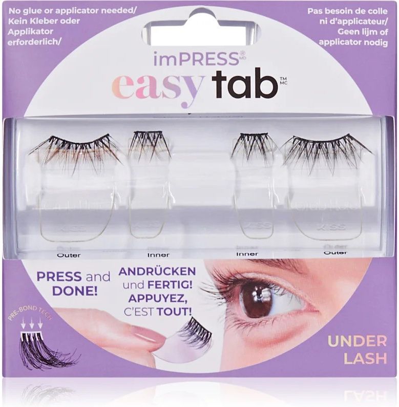 KISS imPRESS easy tab, 4 szt., Sztuczne rzęsy dla kobiet, Natura nie obdarzyła Cię rzęsami, jakich pragniesz? Przedłużenie ich i nadanie im wyrazistego wyglądu nie musi być już tylko marzeniem. Sztuczne rzęsy KISS imPRESS easy tab zapewnią dramatyczny i uwodzicielski wygląd bez konieczności aplikacji wielu warstw tuszu i umawiania się na przedłużanie – możesz to zrobić szybko i łatwo w zaciszu własnego domu. Ciesz się niezwykłą długością, objętością i gęstością, kiedy tylko chcesz. Właściwości: sprawiają naturalne wrażenie rzęsy sprawiają wrażenie dłuższych i gęstszych są niezwykle lekkie i praktycznie niewyczuwalne na powiekach odpowiednie ułożenie włosków zapewnia naturalny efekt bardzo łatwa aplikacja