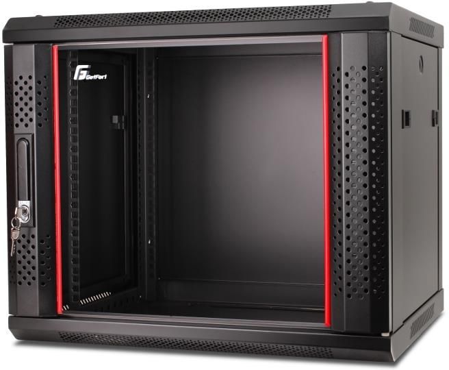 SZAFA RACK GETFORT 19 CALI 9U 600X600 WISZĄCA Najważniejsze cechy Szafy rack dedykowane są do montażu urządzeń z obudową w standardzie 19". Umożliwiają one zabezpieczenie urządzeń przed niepowołanym dostępem, oraz przypadkowym wyłączeniem. Dodatkowo dzięki dobrej wentylacji przedłużają ich żywotność. Do szaf można dokupić opcjonalne półki, które umożliwią montaż urządzeń nie przystosowanych do standardu rack 19". Szafa dostarczona jest w 1 kartonie do samodzielnego montażu. Drzwi boczne demontowane są na zatrzaskach z możliwością montażu zamka Przeznaczenie Szafy rack dedykowane są do montażu urządzeń z obudową w standardzie 19". Umożliwiają one zabezpieczenie urządzeń przed niepowołanym dostępem, oraz przypadkowym wyłączeniem. Dodatkowo dzięki dobrej wentylacji przedłużają ich żywotność. Do szaf można dokupić opcjonalne półki, które umożliwią montaż urządzeń nie przystosowanych do standardu rack 19". Drzwi przednie wyposażone w klamkę z zamkiem i otwory wentylacyjne. Regulowany rozstaw szyn pionowych. W suficie znajduje się przepust kablowy i miejsca na 2 wentylatory 120x120mm. W podłodze znajduje się przepust kablowy Ścianka tylna demontowana za pomocą 4 śrub. Opis Szafy teleinformatyczne GetFort znajdują bardzo szerokie zastosowanie. Nadają się idealnie do montażu systemu monitoringu CCTV, instalacji okablowania strukturalnego zarówno w firmie jak i w domu. Nadają się również do zabudowy pasywnym i aktywnym sprzętem sieciowym. Wszystkie szafy wykonane są z wysokiej jakości materiałów. Umożliwiają dowolną możliwość aranżacji wnętrza, dzięki dostępności wielu akcesoriów. Szafy Getfort posiadają specjalne otwory wentylacyjne w ściankach oraz drzwiach przednich. Umożliwiają również montaż dedykowanych wentylatorów. Umożliwia to wszystko utrzymanie optymalnych warunków pracy zamontowanych urządzeń, a tym samym wydłużenie ich czasu pracy. Specyfikacja techniczna Drzwi przednie przeszklone z wentylacją, drzwi tylne stalowe demontowane, boczne stalowe demontowane na zatrzaskach Przepusty kablowe Dwa przepusty kablowe - jeden w suficie, drugi w podłodze Wymiary szafy 600mm x 600mm x 505mm (szerokość/głębokość/wysokość) Wysokość Możliwość montażu urządzeń o sumarycznej wysokości 9U Materiał Drzwi wykonane z blachy stalowej z wklejoną szybą hartowaną i otworami wentylacyjnymi Obciążalność 60kg Masa 26kg Kolor czarny RAL9004 Montaż Szafa do samodzielnego montażu, dostarczana w jednym kartonie Kod producenta WGF09-66EH-WGB Stopień Ochrony IP20 Do zastosowań Wewnętrznych