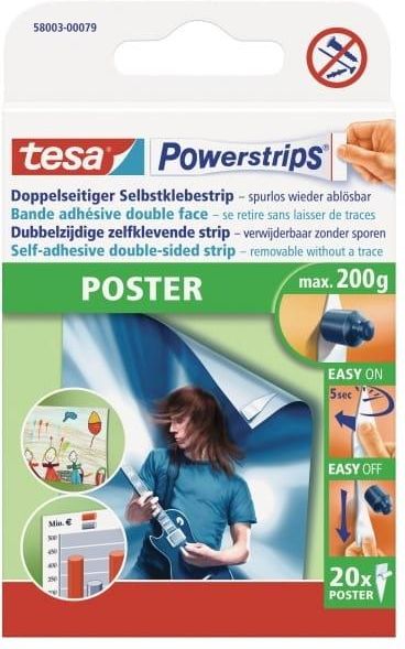 Plastry Klejące Montażowe Tesa Paski Samoprzylepne Do Plakatów 0,2kg 20 szt Najważniejsze cechy produktu ✅ Bezpieczne dla powierzchni – mocowanie plakatów i lekkich dekoracji bez uszkodzeń ✅ Udźwig do 0,2 kg – idealne do lekkich przedmiotów ✅ Usuwalne bez śladów – dzięki technologii Powerstrips® ✅ Do delikatnych powierzchni – tapety, lakierowane ściany i inne gładkie powierzchnie ✅ Odporność na ozon i UV – trwałe przy naturalnym nasłonecznieniu ✅ Łatwy montaż – szybkie przyklejanie i wymiana plakatów Szybko, wygodnie i skutecznie Tak się klei plastrami Powerstrips. W skład zestawu wchodzą 4 plastry. Zawieszenie plakatu będzie czystą przyjemnością. Dwustronne, samoprzylepne plastry umożliwią błyskawiczne przyklejenie wydruku, plakatu czy rysunku na różnych powierzchniach. Sprawdzą się zarówno na tapecie, szkle, drewnie jak i tworzywach sztucznych*. Wytrzymują obciążenia do 200 gram i nie pozostawiają śladów, więc nie musisz martwić się o stan twojej ściany. Koniec z gwoździami i wkrętami Obawiasz się, że zawieszenie plakatu może zniszczyć ścianę, a majsterkowanie nie jest twoją mocną stroną? Nie chcesz zajmować się kuciem ściany, wbijaniem haków cz poszukiwaniem odpowiedniego wkręta? Młotek ostatni raz widziałeś na lekcjach techniki lub musisz pożyczać go od sąsiada? Jeśli chwytałeś się ostatniej deski ratunku i próbowałeś przykleić plakat taśmą przezroczystą lub w rozpaczy chciałeś użyć gwoździ, to już możesz przestać sięgać po tak radykalne rozwiązania. Znalazłeś dla nich doskonałą alternatywę plastry Powerstrips. Łatwy montaż - instrukcja Podłoże musi być suche, czyste i wolne od tłuszczu. Czyścić środkiem do mycia okien lub denaturatem. Nie stosować środków do mycia łazienek. Zdjąć plaster z arkusza i przykleić do przedmiotu, mocno przyciskać prze 5 sekund. Zdjąć zadrukowaną folię ochronną, następnie przykleić przedmiot do podłoża i ponownie mocno przyciskać prze 5 sekund. Przy sztywnych przedmiotach końcówka plastra powinna wystawać. Łatwe usuwanie - instrukcja Przytrzymać przedmiot, nie dociskać. Chwycić za końcówkę plastra Powerstrip i powoli ciągnąć równolegle do podłoża. Nie ciągnąć pod kątem ostrym - niebezpieczeństwo zerwania plastra. Nie stosowanie się do instrukcji może spowodować uszkodzenie podłoża. *Plastry Powersrtips nie nadają się do klejenia na tapetach winylowych i powierzchniach z nieprzywierającą powłoką. Uwaga Do posterów, kalendarzy, plakatów, wydruków, rysunków itp przedmiotów o masie do 200g (Poster), do wielu lekkich przedmiotów (Deco). Zastosowanie kliku plastrów nie zwiększa maksymalnego obciążenia. Łukowate, szorstkie lub nierówne podłoża oraz długotrwałe temperatury powyżej 40ºC zmniejszają siłę klejenia. Nie stosować w samochodach lub temperaturze poniżej 15ºC. Nie stosować na szybach okiennych- plastry nie są odporne na promieniowanie UV. Chronić przed małymi dziećmi: niebezpieczeństwo pomyłki z gumą do żucia.