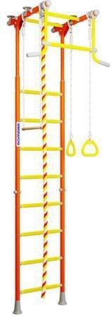 Drabinka Wallbarz Win 1D z mocowaniem do sufituDrabinka Win 1D firmy Wallbarz to wielofunkcyjna drabinka do zabawy i wspinaczki z poziomym drążkiem i kółkami gimnastycznymi dla dzieci. Wykonany z wysokiej jakości metalu, zapewnia zabawę i radość w domu oraz oferuje dzieciom możliwość większego ruchu, trenowania zręczności, kontroli ciała i umiejętności motorycznych.Dane techniczneWysokość mm: 2320 - 2800Szerokość mm: 860Głębokość mm: 700Waga brutto, kg, nie więcej: 25,7Maksymalna waga użytkownika, kg (z wyjątkiem osprzętu): 100Maksymalne obciążenie przystawek, kg: 50Minimalny wiek dziecka: 3 lataTyp montażu: Montaż sufitowy, przez zaciśnięcieDodatkowe wyposażenie: drążek poziomy, lina wspinaczkowa, kółka gimnastyczne i trapez gimnastycznyUwaga! Kolor liny wspinaczkowej i kółek może być szary!drabinki gimnastyczne z montażem zaciskowymDrabinki gimnastyczne zachęcają do aktywności fizycznej i kreatywnej zabawy wszystkie dzieci i dorosłych! Drabinki gimnastyczne z montażem zaciskowym można znaleźć w wielu domach, siłowniach i ośrodkach rehabilitacyjnych. Montaż zaciskowy jest bardzo prosty i bezpieczny i nie wymaga wiercenia w ścianie. Metalowe drabinki ścienne.Każdy, kto ma w domu hałaśliwego malucha, zapewne zgodzi się z tym, że dziecko każdego dnia musi wyładować swoją energię. Idealnym rozwiązaniem są tutaj drabinki ścienne. Drabinki metalowe charakteryzują się solidnością - raz zakupione posłużą przez kilka lat, a dobrze dobrane kolory z pewnością spodobają się każdemu dziecku.Drabinki Wallbarz produkowane są od 20 lat, zostały opatentowane i cieszą się dużą popularnością. Wszystkie elementy zewnętrzne są zaokrąglone i nie mają żadnych nierówności. Wszystkie połączenia gwintowane na drabinkach mają ozdobne plastikowe osłony, a pozostałe elementy są gładkie. Produkt jest odpowiedni dla dzieci od 3 roku życia. Producent deklaruje 100 kg jako maksymalne dopuszczalne obciążenie drabinek gimnastycznych. 230 kg. Instrukcja obsługi zawiera szczegółowe informacje na temat montażu drabinek oraz wskazówki dotyczące prawidłowego i bezpiecznego użytkowania. Jakość i materiałyZestawy sportowe i gimnastyczne są bardzo solidne i wykonane z wysokiej jakości materiałów. Konstrukcja składa się z elementów metalowych, drewnianych i plastikowych, co zapewnia bardzo wysoką trwałość i estetyczny wygląd. Szczeble drabinki gimnastycznej posiadają miękką powłokę z tworzywa sztucznego z wypustkami antypoślizgowymi, która działa antypoślizgowo, a jednocześnie zapewnia masaż dla dłoni i stóp. Stabilna drabinka gimnastyczna może być użytkowana przez kilka lat, nawet przez wiele pokoleń.