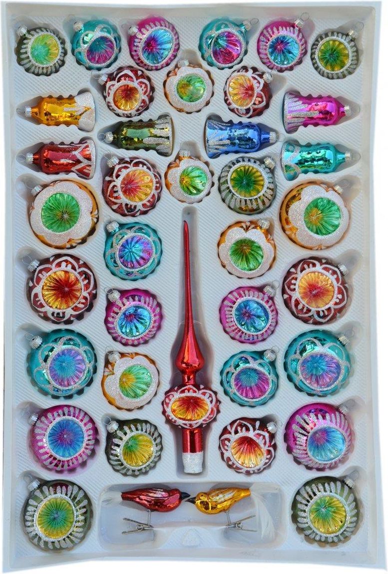Grześkowiak Zestaw 39 Szklanych Bombek Wielokolorowych W Stylu Retro Pieniężno