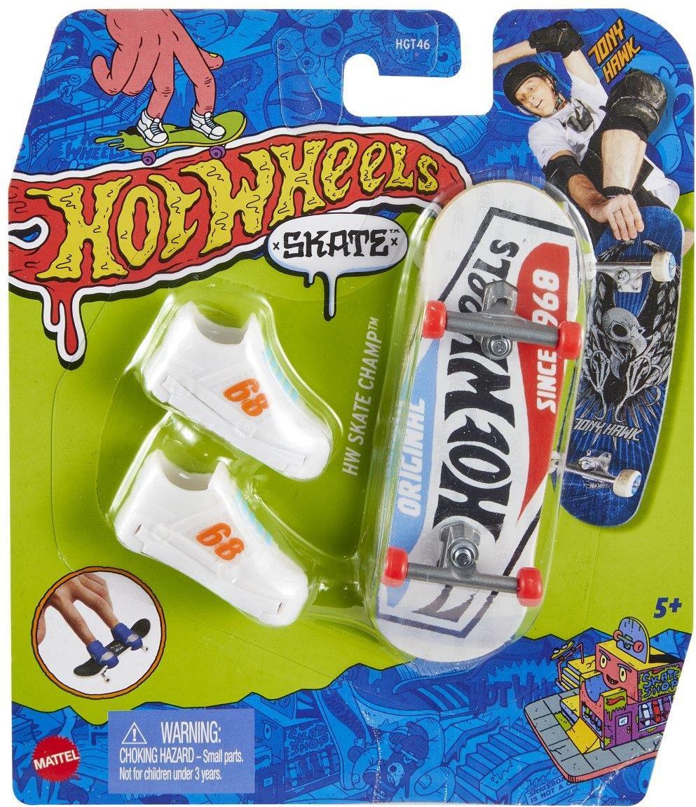 Hot Wheels Skate Deskorolka + buty Asortyment 1 szt. (mix wzorów) Do wyboru jest tak wiele stylów, że dzieci będą chciały zebrać całą kolekcję. (Sprzedawane oddzielnie). Opanuj mistrzowskie tricki na deskorolce Hot Wheels Skate™ zaprojektowanej przez Hot Wheels® wspólnie z legendarnym skateboarderem, Tonym Hawkiem. Deski mają pasujące buty deskorolkowe, do których można włożyć palce podczas nauki sztuczek i tricków. Fani butów sportowych zachwycą się detalami i stylem. Ta kolekcja deskorolek jest pełna fantastycznych grafik i dopracowanych detali, łączących kreatywny geniusz Hot Wheels® i Tony’ego Hawka. Na deskorolkach Hot Wheels Skate™ do jazdy palcami fani skateboardingu mogą robić ollie i śmigać po poręczach – jak ich ulubieńcy z YouTube i prawdziwi zawodowcy. Każda deskorolka do jazdy palcami została zaprojektowana we współpracy z legendą skateboardingu, Tonym Hawkiem, i ma szybko obracające się kółka, aby zapewnić jeszcze większą dynamikę ruchów.