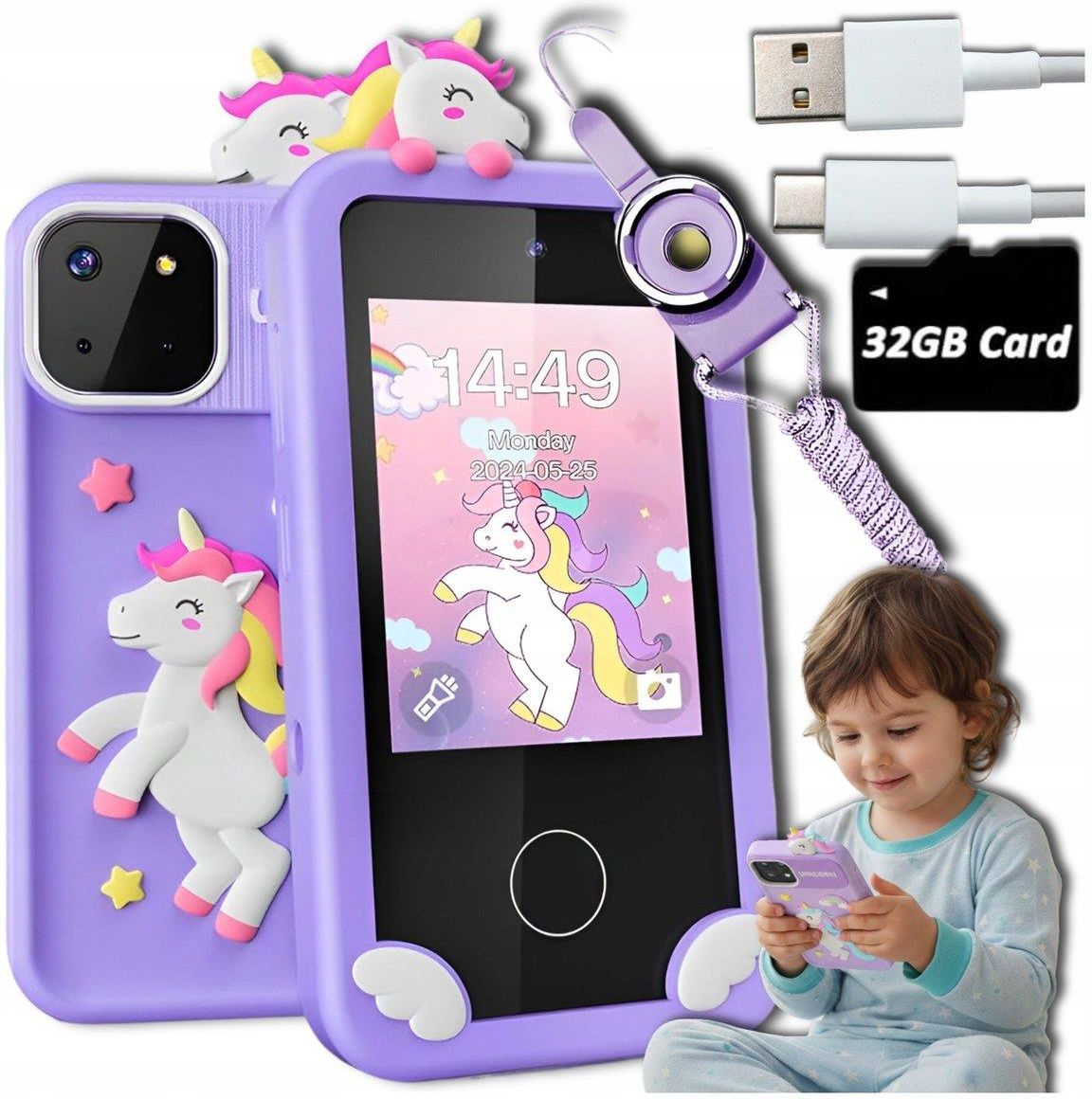 Dziecięcy Telefon Zabawkowy Smartfon Zabawka z Aparatem 10 Gier + Gratis Wielofunkcyjny smartfon dla dzieci To idealne urządzenie dla najmłodszych, łączące w sobie funkcje edukacyjne i rozrywkowe. Smartfon oferuje szereg funkcji, w tym robienie zdjęć, nagrywanie filmów, odtwarzanie plików MP3 oraz 10 gier edukacyjnych. Wykonany z bezpiecznego, nietoksycznego materiału, posiada wstrząsoodporną obudowę, która chroni urządzenie przed uszkodzeniami. Polskie menu Wymiary: 14.5 x 7 x 2.1 cm (w etui) Większy ekran: 2.8" IPS, rozdzielczość 240×320 Port ładowania: USB typu C Wbudowana pamięć: 8 GB Duża bateria: 1000 mAh, akumulator ładowalny Czas ładowania: 2–3 godziny Kolory: Fioletowy Waga: 130g KARTA PAMIĘCI 8 GB GRATIS Z telefonu nie można dzwonić, ani pisać sms'ów Funkcje Aparat i kamera – podwójny aparat umożliwia dzieciom robienie zdjęć i nagrywanie filmów, zachęcając do kreatywności i uchwycenia niezapomnianych chwil. Odtwarzacz muzyki i multimediów – dzieci mogą słuchać ulubionych piosenek i nagrań, rozwijając wrażliwość muzyczną i bawiąc się rytmem. Gry edukacyjne i zręcznościowe – bogata kolekcja gier uczy logicznego myślenia, refleksu i spostrzegawczości, jednocześnie zapewniając świetną zabawę. Opowieści i Bajek – urządzenie pozwala na samodzielne wgrywanie ulubionych historii i bajek, które wspierają rozwój wyobraźni oraz umilają dziecku czas wolny. Dyktafon – funkcja nagrywania głosu pozwala dzieciom tworzyć własne notatki dźwiękowe, piosenki lub opowieści. Alfabet i nauka liter – aplikacja edukacyjna wspiera naukę liter i słów poprzez interaktywne zabawy. Pianino – wirtualne pianinko pozwala dzieciom rozwijać zdolności muzyczne i tworzyć własne melodie. Malowanie i rysowanie – specjalna aplikacja umożliwia rysowanie palcem na ekranie, co wspiera rozwój zdolności plastycznych. Edytor zdjęć i wideo – możliwość edycji zdjęć i filmów, dodawanie efektów, ramek, naklejek i napisów rozwija kreatywność dziecka. Głośnik z gniazdem słuchawkowym – wysokiej jakości głośnik z możliwością podłączenia słuchawek pozwala na cieszenie się muzyką i dźwiękami w dowolnym miejscu. Ramki i naklejki do zdjęć – dzieci mogą ozdabiać swoje zdjęcia zabawnymi ramkami i naklejkami, dodając im osobistego charakteru. Tapety – 20 kolorowych tapet do wyboru pozwala na personalizację wyglądu urządzenia i sprawia, że każde użycie jest wyjątkowe. Kalendarz, timer, stoper i budzik – zestaw praktycznych narzędzi do nauki organizacji, mierzenia czasu oraz planowania codziennych aktywności. Kalkulator – pomaga dzieciom w nauce podstawowych działań matematycznych. Latarka – wbudowana latarka to praktyczny dodatek, który sprawdzi się w różnych sytuacjach. Kontrola rodzicielska – rodzice mogą ustawić limity czasu korzystania z urządzenia i kontrolować dostęp do wybranych funkcji. Ustawienia i personalizacja – możliwość dostosowania jasności ekranu, dźwięków, języka i innych parametrów według potrzeb dziecka. Aparat i Kamera Telefon wyposażony jest w podwójny aparat - przedni i tylny, który pozwala na łatwe robienie zdjęć i nagrywanie filmów w 1080p. Funkcja ta jest szczególnie przydatna dla dzieci, które lubią tworzyć i uwieczniać wspomnienia. Aparat jest też wyposażony w 10-krotny zoom optyczny. Dodatkowo, urządzenie oferuje zabawne ramki i naklejki, które dzieci mogą używać do ozdabiania swoich zdjęć, dodając im wyjątkowego charakteru. Głośnik Wysokiej jakości głośnik z obsługą gniazda słuchawkowego 3,5 mm umożliwia dzieciom słuchanie muzyki i dźwięków w najlepszej jakości. Funkcja ta jest idealna dla małych miłośników muzyki, którzy chcą cieszyć się swoimi ulubionymi utworami w dowolnym miejscu i czasie. Gry Edukacyjne Wbudowane gry edukacyjne to jedna z najważniejszych funkcji tego smartfona dla dzieci, oferując 10 różnych gier, które są nie tylko zabawne, ale także edukacyjne. Gry te zostały zaprojektowane w celu rozwijania logicznego myślenia, umiejętności reakcji oraz koordynacji wzrokowo-ruchowej u dzieci. Tapety na Pulpit i Menu ️Personalizacja ekranu to dodatkowa atrakcja dla dzieci. Telefon oferuje aż 20 tapet na pulpit, które można dowolnie zmieniać, dostosowując wygląd urządzenia do nastroju i upodobań użytkownika. Dzięki tej funkcji dzieci mogą uczynić swój smartfon wyjątkowym i niepowtarzalnym. Idealny pomysł na prezent Smartfon dla dzieci to doskonały wybór na prezent dla najmłodszych, łączący w sobie funkcje rozrywkowe i edukacyjne. Jego kolorowy i przyciągający wzrok design sprawia, że jest on szczególnie atrakcyjny dla dzieci w wieku od 3 do 8 lat. Jest to prezent, który z pewnością ucieszy każde dziecko, dostarczając mu radości i wspierając jego rozwój. Najczęściej zadawane pytania 1. Jakie są główne funkcje smartfona dla dzieci? Smartfon oferuje funkcje takie jak robienie zdjęć, nagrywanie filmów, odtwarzanie plików MP3 oraz 10 gier edukacyjnych, co czyni go idealnym urządzeniem do nauki i zabawy. 2. Czy urządzenie jest bezpieczne dla dzieci? Tak, smartfon jest wykonany z bezpiecznego, nietoksycznego materiału i posiada wstrząsoodporną obudowę, co chroni go przed uszkodzeniami i jest bezpieczny dla dzieci. 3. Czy urządzenie ma menu w języku polskim? Tak, smartfon posiada menu w języku polskim, co ułatwia jego obsługę przez dzieci. 4. Jakie rozdzielczości zdjęć i filmów oferuje urządzenie? Urządzenie oferuje rozdzielczość 1080p, która jest odpowiednia dla podstawowych zdjęć i filmów. 5. Czy smartfon obsługuje karty pamięci? Tak, smartfon obsługuje karty SD do 8GB, co pozwala na przechowywanie większej ilości zdjęć, filmów i muzyki. KARTA GRATIS 6. Jaki port ładowania posiada urządzenie? Smartfon jest wyposażony w port ładowania USB typu C, co zapewnia szybkie i wygodne ładowanie. 7. Jakie g