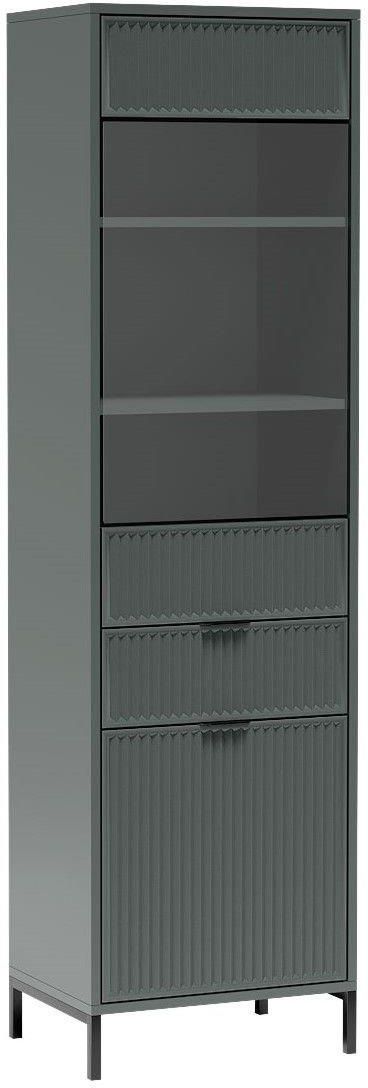 Witryna Link A Styles LS5 Stone Green to elegancki i funkcjonalny mebel, który doskonale uzupełni nowoczesne wnętrza. Jej wyjątkowy odcień zieleni Stone Green dodaje wnętrzu stylu i świeżości, a minimalistyczny design podkreśla elegancję aranżacji. Przeszklone drzwi pozwalają efektownie wyeksponować dekoracje, zastawę lub książki, a zamknięte półki zapewniają dodatkową przestrzeń do przechowywania. Idealna do salonu, jadalni lub gabinetu.