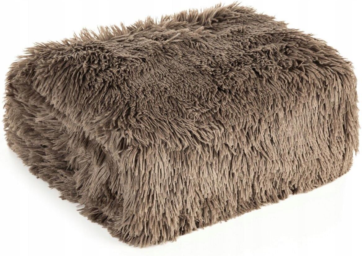 Koc Narzuta 200X220 Tiffany 1 Ciemnobeżowy Włochacz Pled D91 Pieniężno