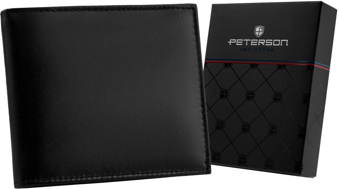 Mały klasyczny portfel męski ze skóry naturalnej czarny elegancki na karty ochrona antykradzieżowa PETERSON Pieniężno