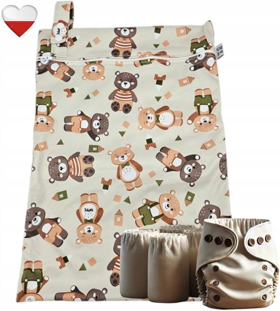 Nappime Worek Pul Do Przechowywania Pieluszek Wielorazowych Z Motywem Misie Zielone Pieniężno