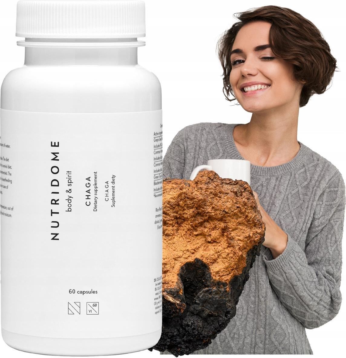 Chaga na odporność, funkcjonowanie układu pokarmowego oraz nerwowego suplement diety Nutridome 60 szt. Chaga (Inonotus obliquus), znana jako błyskoporek podkorowy, to grzyb występujący w naturalnym środowisku półkuli północnej – najczęściej zbierany z kory brzozy. Od wieków wykorzystywany jest w tradycyjnej medycynie, zwłaszcza na Syberii. Nutridome Chaga to suplement diety zawierający 400 mg ekstraktu 4:1 z owocników tego grzyba w każdej kapsułce. Preparat wspiera odporność, działa antyoksydacyjnie i pomaga organizmowi w utrzymaniu witalności. Nutridome Chaga – naturalne wsparcie odporności i energii! Cechy produktu 400 mg ekstraktu w każdej kapsułce naturalne wsparcie odporności i energii silne działanie antyoksydacyjne wzmocnienie układu odpornościowego wsparcie koncentracji i energii 60 kapsułek w opakowaniu Specyfikacja Marka: Nutridome Produkt: Chaga Przeznaczenie: kobiety i mężczyźni Skład: ekstrakt 4:1 z owocników błyskoporka podkorowego (Inonotus obliquus), otoczka kapsułki: żelatyna Forma: kapsułki Ilość sztuk: 60 / opakowanie Opakowanie: słoiczek Produkt nie zawiera: soi, soli, barwników, laktozy, cukru, jodu Suplement produkowany w UE i nietestowany na zwierzętach Sposób przechowywania: Przechowywać w szczelnie zamkniętym opakowaniu w temperaturze pokojowej, w sposób niedostępny dla małych dzieci. Chronić przed światłem i wilgocią Działanie Chaga to prawdziwa „grzybowa multiwitamina” – zawiera polifenole, beta-glukany, witaminy z grupy B oraz cenne minerały, takie jak cynk, miedź czy żelazo. Składniki te wspierają organizm na wielu poziomach, zwłaszcza w okresach osłabienia, przewlekłego zmęczenia czy zwiększonego ryzyka infekcji. Ekstrakt z Chaga wykazuje silne działanie antyoksydacyjne – neutralizuje wolne rodniki, chroni komórki przed stresem oksydacyjnym i może spowalniać procesy starzenia. Co ważne, zawarte w suplemencie beta-glukany i związki bioaktywne stymulują komórki odpornościowe do działania. Regularne stosowanie Nutridome Chaga może pomóc w poprawie samopoczucia, zwiększeniu odporności, ułatwić regenerację po wysiłku fizycznym lub chorobie, a także pozytywnie wpłynąć na poziom energii i koncentrację w ciągu dnia. To codzienne wsparcie dla tych, którzy chcą dbać o zdrowie w sposób naturalny i skuteczny. Sposób użycia 1 kapsułka dziennie po posiłku, popita odpowiednią ilością wody. Nie należy przekraczać zalecanej dziennej porcji do spożycia. Zalecenia Suplement diety nie może być stosowany jako substytut (zamiennik) zróżnicowanej diety. Zalecany jest urozmaicony sposób żywienia oraz zdrowy tryb życia. Nie zaleca się stosowania kobietom w ciąży, karmiącym oraz osobom poniżej 18. roku życia. Nie stosować w przypadku alergii lub nadwrażliwości na składniki preparatu. Osoby przyjmujące leki lub cierpiące na cukrzycę przed użyciem powinny zasięgnąć opinii lekarza. NUTRIDOME Marka kosmetyczna, której misją jest dbanie nie tylko o piękno zewnętrzne, ale i osiągnięcie wewnętrznej harmonii. Kosmetyki pielęgnują ciało, cerę oraz włosy, jednocześnie zapewniając prawdziwą ucztę dla zmysłów. Formuły wyróżnia idealna konsystencja i odprężające aromaty. Wybierając produkty z oferty Nutridome masz pewność, że sięgasz po najlepsze formuły i skuteczne składniki. Nasze kosmetyki to przepis na naturalną codzienność stworzony przez ekspertów z dziedziny kosmetologii.