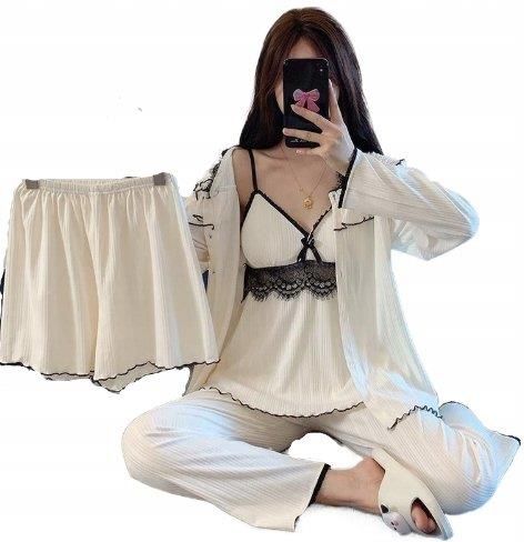 Seksowna Koronkowa Piżama Damska 4-Częściowa Na Guziczki Długie Spodnie Xl Pieniężno
