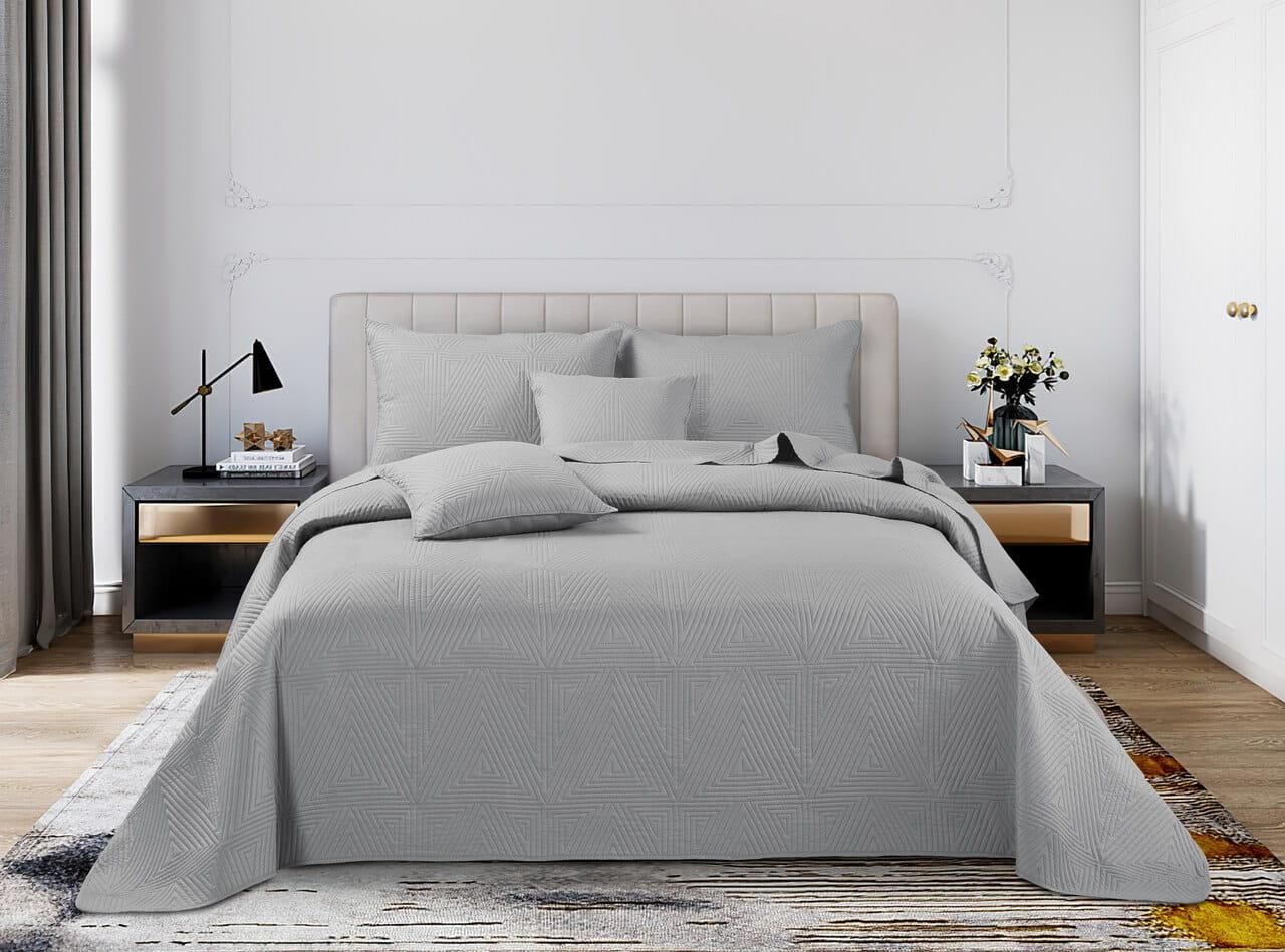 Spod Igły I Nitki Szara Narzuta Pikowana Na Łóżko 200X220 Trio Pieniężno