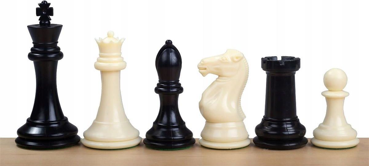 Figury szachowe Exclusive Staunton nr 7, białe/czarne, dociążane metalem (k Oferujemy Państwu plastikowe figury, które są dociążane metalem, pakowane w foliowe woreczki strunowe. Figury w kolorze biało/czarnym, wysokość króla wynosi 104 mm. Figury te pasują do szachownic składanych Szachownica plastikowa składana nr 6, biało - brązowa oraz winylowych Szachownica winylowa rolowana nr 6, biało - brązowa Na uwagę zasługuje figurka konia - koń to uniwersalna postać z uniesioną głową i eleganckim wyglądem. Ruchy konia są klarowne, a detale nadają mu wyjątkowy charakter. W skład zestawu wchodzą 34 bierki szachowe (2 dodatkowe hetmany), w sumie 16 pionów i 18 figur szachowych w obu kolorach. Figury szachowe Exclusive Staunton nr 7 to nie tylko narzędzie do gry, ale również elegancki element dekoracyjny, który z pewnością przyciągnie uwagę miłośników szachów. To idealny zestaw dla osób ceniących wysoką jakość wykonania i estetykę w szachowej grze. Dla szkół i klubów szachowych SPECJALNA PROMOCYJNA CENA! Figury szachowe Exclusive Staunton nr 7, białe/czarne, dociążane metalem (król 104 mm) WYSOKOŚĆ KRÓLA: 104 mm MATERIAŁ (FIGURY): plastik ŚREDNICA PODSTAWY KRÓLA: 48 mm WYSOKOŚĆ PIONA: 56 mm ŚREDNICA PODSTAWY PIONA: 35 mm DODATKOWE HETMANY: TAK ROZMIAR: Nr 7 (król ok.100mm) Kod producenta: DCP04H