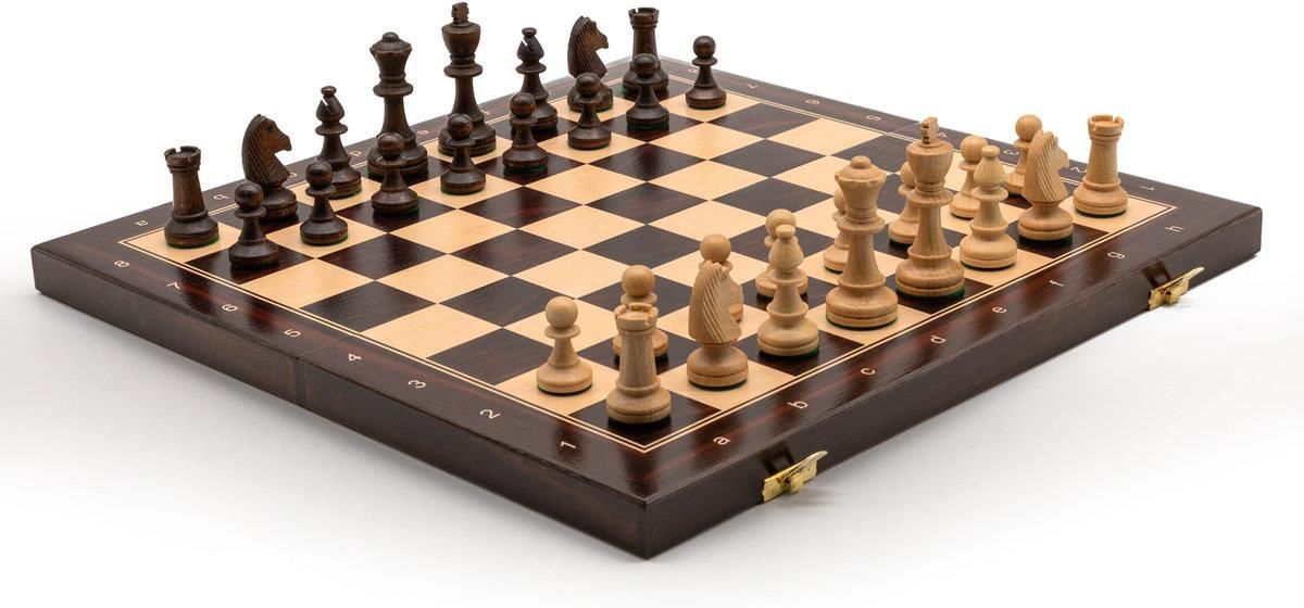 Szachy Turniejowe Orzech- Brzoza Rozmiar 40 cm Kupując produkty z naszej oferty dokonujesz zakupu bezpośrednio u producenta Podstawowym materiałem jest drewno lipowe oraz sklejka brzozowa. Rozłożona szachownica ma wymiary 40x40x2,7 cm, po zamknięciu stanowi pudełko, w którym można przechowywać …