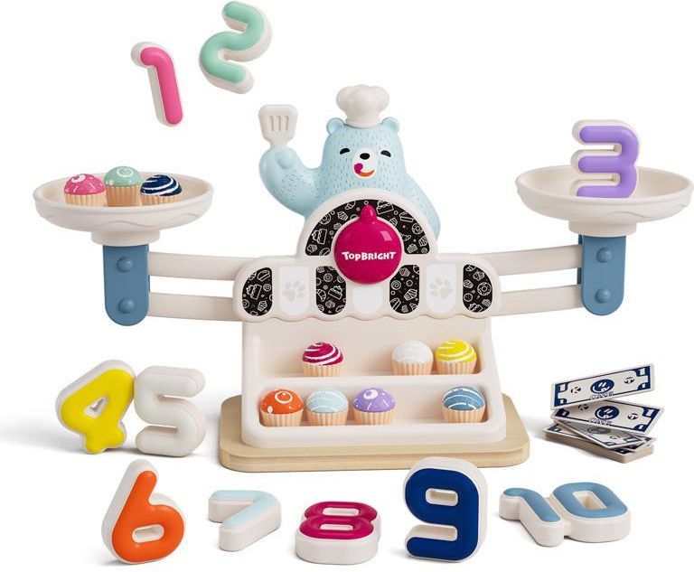 TOP BRIGHT GŁODNY MIŚ ZABAWKA EDUKACYJNA WAGA DLA DZIECI DO NAUKI LICZENIA Te babeczki wyglądają przepysznie! Ale ile ważą? Dzieci dowiedzą się tego podczas zabawy w cukiernię. Kupujcie smaczne babeczki i ważcie je za pomocą wagi od TOPBRIGHT. Zabawka edukacyjna składa się z wagi opatrzonej figurką …