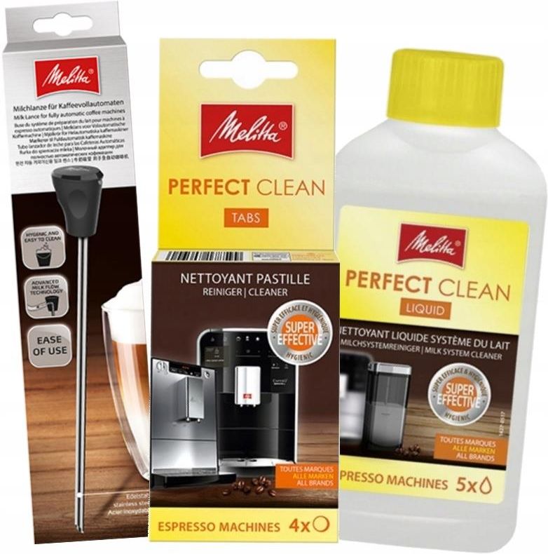 Zestaw Do Systemu Mlecznego Lanca Do Spieniania Mleka Zestaw Do Czyszczenia Ekspresu Melitta Zestaw Do Czyszczenia Ekspresu Melitta Specyfikacja tabletki czyszczące Zastosowanie: do automatycznych ekspresów do kawy, czyszczenie modułu zaparzającego Zawartość opakowania: 4 tabletki po 1,8 g Każda tabletka osobno pakowana w hermetyczne opakowanie Właściwości: usuwają tłuszcze i olejki kawowe, bezzapachowe Efekty: chronią zaparzacz przed osadem, poprawiają smak kawy, przedłużają żywotność ekspresu Specyfikacja płyn do czyszczenia systemu mleka: Zastosowanie: do czyszczenia układów mlecznych w ekspresach automatycznych Butelka: 250 ml Wystarcza na 5 cykli czyszczenia Właściwości: bezzapachowy, czytelne oznaczenia na butelce ułatwiają dozowanie, do rozcieńczenia z wodą w proporcji 1:10 Efekty: skutecznie usuwa zaschnięte mleko, osady i bakterie, poprawia smak napojów mlecznych, utrzymuje czystość systemu mleka Specyfikacja lanca do spieniania mleka Zastosowanie: do spieniania mleka w ekspresach z systemem mlecznym Materiał: Stal nierdzewna Kolor: czarny Wymiary: 40 cm x 57 cm x 28,4 cm Właściwości: wielokrotnego użytku, precyzyjny przepływ mleka, łatwa do zamontowania i czyszczenia Efekty: umożliwia przygotowanie drobnoporowatej, jedwabistej pianki, zastępuje pojemniki na mleko Zestaw Do Systemu Mlecznego Przeznaczone są do wielu większości ekspresów dostępnych na rynku, np: Siemens, Bosch, Krups, DeLonghi, Electrolux, Nespresso, Saeco, Miele, AEG i inne. Lanca Do Spieniania Mleka Wspólne cechy Produkty marki Melitta – lidera w pielęgnacji ekspresów Bezzapachowe i bezpieczne środki – nie wpływają na smak kawy Kompatybilność z większością ekspresów automatycznych Wszystkie elementy są łatwe w użyciu i nie wymagają specjalistycznej wiedzy Wydajne – do 5 cykli czyszczenia mleka, 4 czyszczenia zaparzacza, lanca na lata Wspólne zalety Kompleksowe czyszczenie ekspresu i systemu mlecznego Poprawa jakości i smaku kawy oraz napojów mlecznych Utrzymanie pełnej higieny urządzenia Wydłużenie żywotności ekspresu i jego komponentów Profesjonalna jakość czyszczenia w warunkach domowych Oszczędność czasu i pieniędzy – zestaw 3w1 Idealny wybór do codziennego użytku i konserwacji ekspresu Najczęściej Zadawane Pytania (FAQ) Czy ten zestaw pasuje do mojego ekspresu Melitta z systemem mlecznym? Tak – jest w pełni kompatybilny z ekspresami Melitta oraz innymi modelami posiadającymi system spieniania mleka. Jak często używać tych środków? Tabletki czyszczące: co około 250 filiżanek lub raz w miesiącu Płyn do mleka: co kilka dni lub po każdym intensywnym użyciu systemu mleka Czy lanca pasuje do każdego ekspresu? Lanca jest uniwersalna – pasuje do większości ekspresów z końcówką do mleka (przewód mleczny).