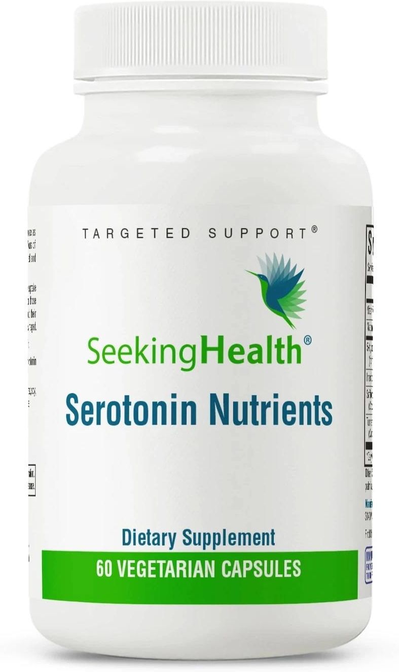 Nazwa produktu: Seeking Health, Składniki Serotoniny, 60 Wegetariańskich Kapsułek Data minimalnej trwałości: brak informacji Zawartość opakowania: 60 szt. KOD EAN: 810007521787 >Opis ( Tłumaczenie AI ) Wsparcie Ukierunkowane® Suplement diety Testowane niezależnie przez firmę zewnętrzną Składniki odżywcze Serotoniny wspomagają tworzenie i aktywność zdrowych poziomów serotoniny. Składniki odżywcze Serotoniny spełniają lub przekraczają normy jakości cGMP. Składniki dodatkowe: Vegetarian capsule (hypromellose and water), ascorbyl palmitate, L-leucine, and silica. Does not contain: Milk, eggs, fish, shellfish, tree nuts, peanuts, wheat, soy, gluten, GMO, artificial colors, artificial flavors, or artificial preservatives. Sugerowane użycie: ' Przyjmować 1 kapsułkę z jedzeniem w dowolnym czasie dnia lub stosować zgodnie z zaleceniami lekarza. Nie przyjmować w ciągu 5 godzin przed snem, ponieważ może to zakłócić sen. Kapsułkę można otworzyć i posypać na kęs jedzenia, jeśli chcesz zmniejszyć dawkę. 361256