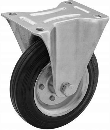 Koło stałe na płytce 200 mm | stalowo-gumowe | 230 kg | łożysko wałeczkowe Wytrzymałe koło stałe FI 200 mm to solidne rozwiązanie do różnorodnych zastosowań przemysłowych, magazynowych i warsztatowych. Wykonane z tłoczonej, ocynkowanej blachy stalowej oraz wyposażone w oponę z pełnej, czarnej gumy …