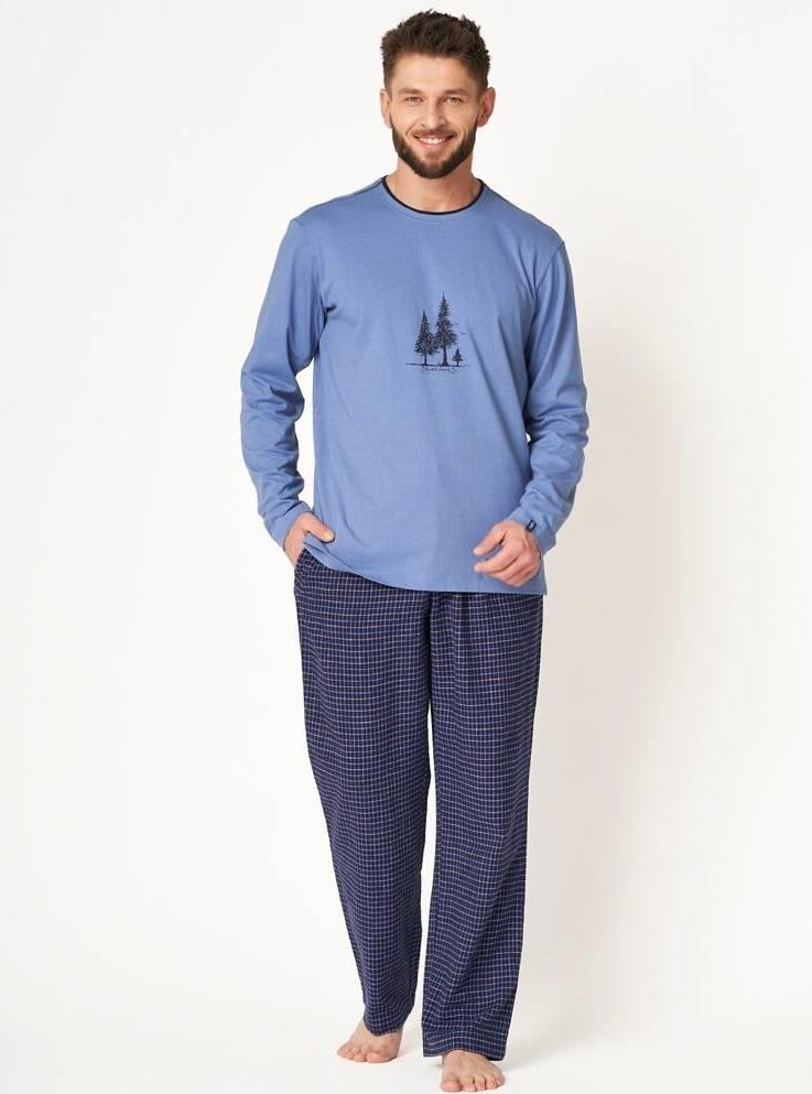 Piżama męska Key MNS 458 niebieska flanelowe spodnie Pierzchnica