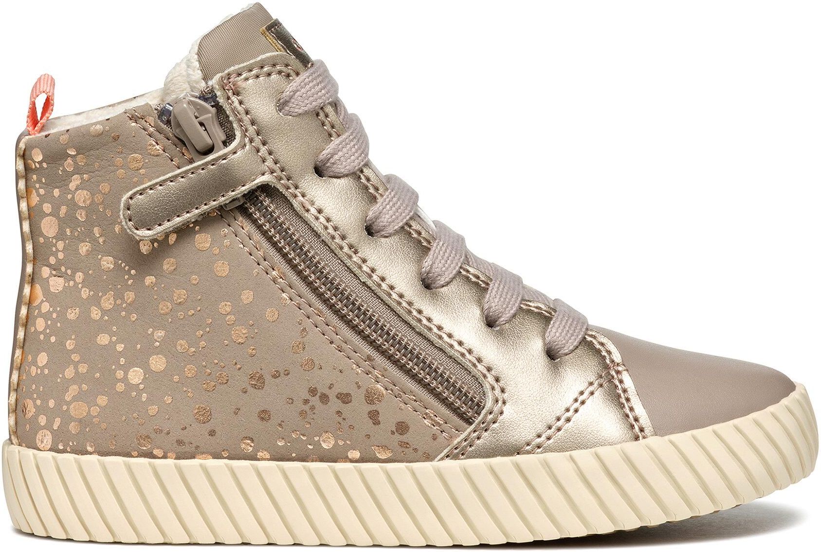 Sneakersy dziecięce wysokie dla dziewczynki Geox J Mirroless Girl Dziewczęce sneakersy Geox J Mirroless Girl to stylowe i komfortowe obuwie, które łączy nowoczesny design z praktycznością do codziennego użytku. Cholewka wykonana z poliuretanu zapewnia trwałość, łatwą pielęgnację oraz atrakcyjny wygląd. Intensywny kolor z delikatnym nadrukiem w postaci drobnych kropek nadaje modelowi wyrazistego charakteru, a błyszczące elementy z efektem perłowej skóry dodają elegancji. Dzięki wygodnemu bocznemu zamkowi błyskawicznemu obuwie łatwo się zakłada, co czyni je idealnym wyborem na aktywne dni szkolne oraz czas wolny. Szczegóły Ochrona przed zimnem dzięki wysokiemu poziomowi izolacji termicznej. Szybkie i łatwe zakładanie bez zbędnego wysiłku. Zapięcie na sznurowadła i zamek błyskawiczny dla wygody oraz pewnego dopasowania stopy. Wyjmowana wkładka dla higieny i dodatkowego komfortu. Technologia Respira łączy perforowaną podeszwę z wodoodporną membraną, pozwalając stopom pozostać suchymi i utrzymując optymalny mikroklimat podczas aktywnego dnia. Zalecenia dotyczące pielęgnacji Regularnie usuwać brud i kurz z powierzchni butów za pomocą miękkiej szczotki lub gąbki. Po każdym noszeniu suszyć obuwie, unikając nadmiernego nagrzewania. Należy unikać silnego przemoczenia obuwia. Zaleca się używanie specjalnych wkładek lub papieru, aby zachować kształt obuwia.