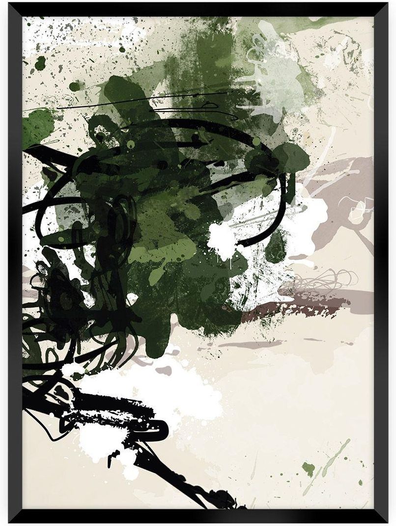 Plakat z abstrakcyjnym motywem w odcieniach zieleni, czerni i beżowego.Sztuka abstrakcyjna ma tą zaletę, że można ją interpretować w całkowicie dowolny sposób. Abstrakcyjne dzieła są nieodłącznym elementem stylowych aranżacji wnętrz.Grafika wydrukowana została na papierze satynowym bez połysku o gramaturze 200g. Plakat można kupić bez ramki, jednak dla uzyskania lepszego efektu dobierz pasującą ramkę. Pozwoli Ci to na stworzenie kompletnej galerii na ścianie. W naszej ofercie posiadamy ramki w kolorze: białym, czarnym, srebrnym i złotym. Ramki dostępne są w pięciu rozmiarach. Rozmiary 21x30cm, 30x40cm, 40x50cm wykonane są z tworzywa sztucznego. Rozmiary 50x70cm i 70x100cm wykonane są z aluminium.