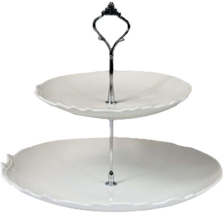 Goliat Biała Dwupiętrowa Patera Z Uchwytem Na Ciasta I Słodycze Wh229 Piła