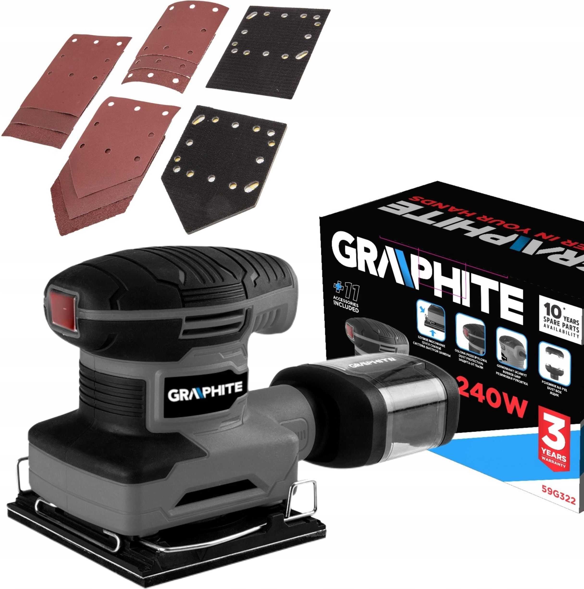 Graphite 59G322 Szlifierki i polerki to narzędzia, które odgrywają kluczową rolę w obróbce różnorodnych powierzchni. Dzięki nim można uzyskać gładkie i estetyczne wykończenie drewna, metalu, betonu oraz innych materiałów. Wybór odpowiedniego narzędzia zależy od specyfiki pracy i rodzaju powierzchni, którą planujemy obrabiać. Przedstawiamy Graphite 59G322, szlifierkę oscylacyjną, która spełni oczekiwania nawet najbardziej wymagających użytkowników. Wszechstronność zastosowania Graphite 59G322 to szlifierka oscylacyjna, idealna do wygładzania i polerowania różnych powierzchni. Dzięki ruchowi oscylacyjnemu i obrotowemu stopy, narzędzie sprawnie usuwa materiał, nie pozostawiając mało estetycznych śladów. Jest polecana do precyzyjnych zadań i doskonale sprawdza się przy obróbce drewna, betonu oraz metalu. Moc i prędkość obrotowa Jednym z kluczowych parametrów Graphite 59G322 jest jej moc wynosząca 240 W. Narzędzie charakteryzuje się prędkością bez obciążenia wynoszącą 13000 obrotów na minutę (RPM). Taka specyfikacja zapewnia wydajność i efektywność podczas pracy, umożliwiając szybkie i dokładne wykonanie zadania. Zasilanie i wymiary Szlifierka jest zasilana siecowo, co oznacza, że wymaga podłączenia do gniazdka elektrycznego o napięciu 230 V. Narzędzie jest lekkie, waży zaledwie 2 kg, co pozwala na komfortową pracę jedną ręką. Stopa szlifierki ma wymiary 110 x 100 mm. Dodatkowe funkcje i wyposażenie wygodny system odprowadzania pyłu, pojemnik na zbierające się odpadki, szybka wymiana papieru ściernego, wymienne stopy: kwadratowa, prostokątna i trójkątna. Bezpieczeństwo i komfort użytkowania Narzędzie jest wyposażone w antypoślizgową rękojeść, która zapewnia pewny chwyt podczas pracy. Amplituda oscylacji wynosi 1 mm, co pozwala na precyzyjne szlifowanie bez ryzyka uszkodzenia powierzchni. Zawartość zestawu szlifierka oscylacyjna 240 W, 3 wymienne stopy: kwadratowa, prostokątna, trójkątna, 9 sztuk papieru ściernego, pojemnik na pył z filtrem.