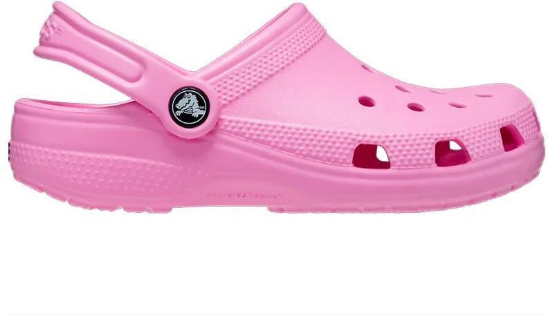 Klapki młodzieżowe Crocs Classic Clog 206991-6SW – różowe Młodzieżowe klapki Crocs Classic Clog. Wersja popularnego modelu klapek od Crocs. Buty posiadają szerokie, profilowane wkładki z otulającymi pięty tylnymi paskami, co gwarantuje bezpieczeństwo i wsparcie stóp. Otwory wentylacyjne umieszczone na cholewce oferują zwiększoną oddychalność. Buty w całości wykonane zostały z pianki Croslite zapewniającej maksymalną lekkość, amortyzację i miękkość przez cały dzień. Młodzieżowe klapki Crocs to dobry wybór podczas letnich dni zapewniający komfort użytkowania. Model ten świetnie dopełni dziecięce koszulki. Specyfikacja: - w całości wykonane z pianki Croslite - profilowane wkładki - pasek na pięcie - otwory wentylacyjne