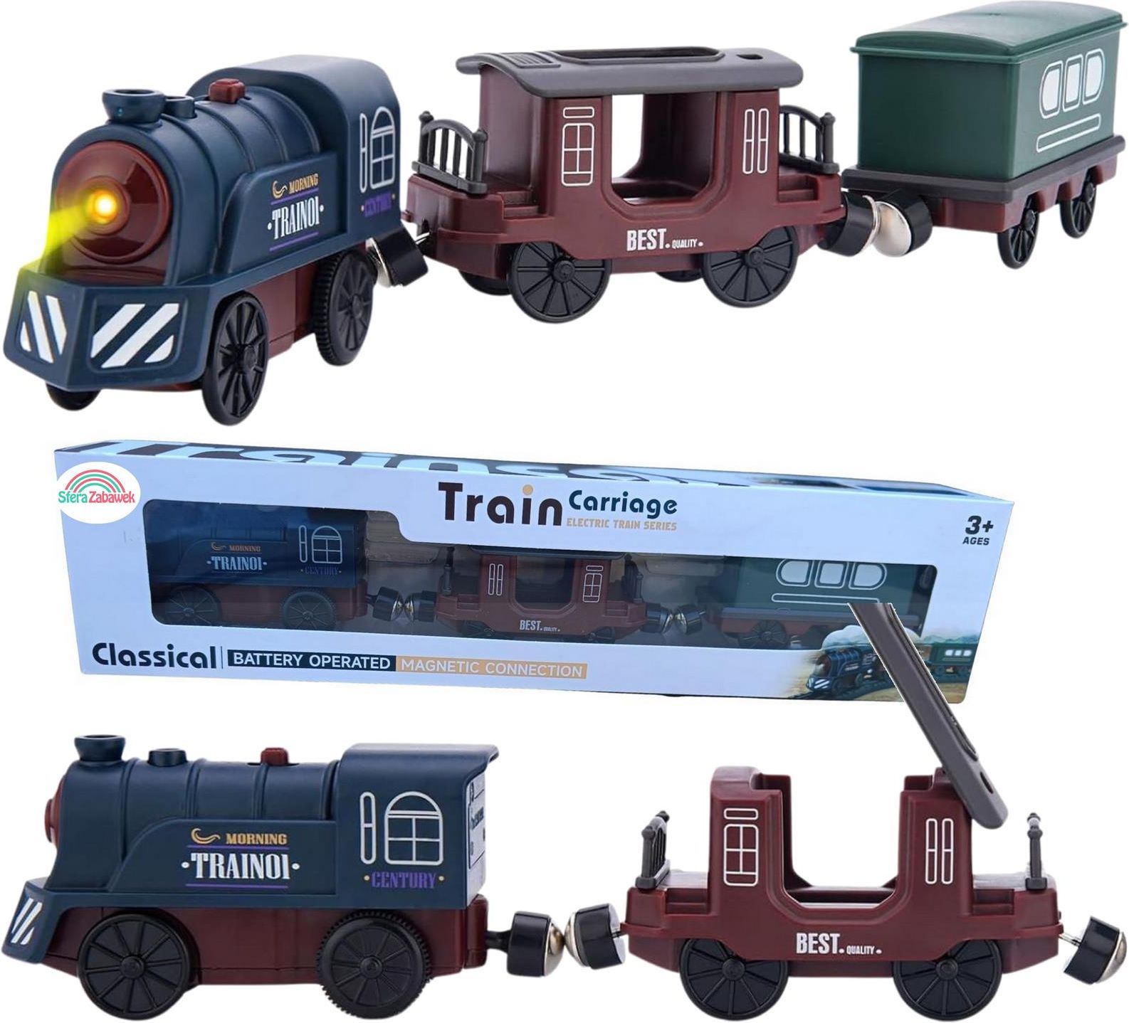 Wyrusz w Niezapomnianą Podróż z Naszą Wyjątkową Kolejką! 🚂 Wyrusz w niezapomnianą podróż z naszą wyjątkową kolejką elektryczną na baterie, która dostarczy Twojemu dziecku godzin kreatywnej i radosnej zabawy! Ten fantastyczny zestaw kolejowy składa się z realistycznie wyglądającej lokomotywy oraz dwóch magnetycznych wagoników, które razem tworzą uroczy pociąg zabawkowy. Lokomotywa Pełna Efektów ✨Sercem zestawu jest niebieska lokomotywa z dźwiękiem i światłem. Po naciśnięciu przycisku na dachu, zabawka ożywa – zapala się przednia lampa, a z głośnika wydobywa się realistyczny dźwięk gwizdka pociągu. Po przesunięciu suwaka pociąg elektryczny samoczynnie rusza do przodu, ciągnąc za sobą wagoniki. To wspaniała interaktywna lokomotywa, która zachwyci każdego małego maszynistę. Do jej zasilania potrzebne są dwie baterie AAA (brak w zestawie). Interaktywne Wagoniki i Nieograniczone Możliwości. Do lokomotywy dołączone są dwa wagoniki magnetyczne: elegancki wagon pasażerski z otwieranymi drzwiczkami, do którego można wkładać figurki ulubionych postaci, oraz praktyczny wagon towarowy do przewożenia małych skarbów. Silne magnesy pozwalają na łatwe łączenie i rozbudowę pociągu o dodatkowe wagony, tworząc jeszcze dłuższe i bardziej imponujące składy. Uniwersalność i Jakość Nasz pociąg do torów drewnianych jest w pełni kompatybilny z popularnymi systemami torów,co pozwala na łatwe włączenie go do już posiadanej kolekcji. Solidne magnesy zapewniają mocne i stabilne połączenie między elementami, nawet podczas dynamicznej jazdy. Całość wykonana jest z najwyższej jakości, bezpiecznych dla dzieci materiałów, co gwarantuje trwałość i odporność na uszkodzenia. Ta zabawka dla dzieci to nie tylko świetna rozrywka, ale również zabawka edukacyjna, która wspiera rozwój wyobraźni, zdolności motorycznych i myślenia przyczynowo-skutkowego. Idealny Prezent dla Każdego Dziecka 🎁Jest to idealny prezent dla chłopca i dziewczynki, który z pewnością wywoła uśmiech na ich twarzach. Podaruj swojemu dziecku bilet na pociąg do krainy wyobraźni! ELEKTRYCZNY NAPĘD I MOC Twoje dziecko pokocha tę zasilaną na baterie lokomotywę, która z łatwością pociągnie za sobą dołączone wagoniki. Wystarczy nacisnąć przycisk, aby usłyszeć realistyczny dźwięk gwizdka i zobaczyć świecącą lampę, a pociąg ruszy w fascynującą podróż. Potężny silniczek gwarantuje płynną jazdę nawet z dodatkowymi wagonami, zapewniając godziny wciągającej zabawy. Zestaw wymaga 2 baterii AAA (brak w zestawie). EFEKTY ŚWIETLNE I DŹWIĘKOWE Ta interaktywna lokomotywa ożywia zabawę dzięki wbudowanym efektom. Po aktywacji, przednia lampa lokomotywy zapala się jasnym światłem, oświetlając trasę, a z głośnika wydobywa się autentyczny odgłos pociągu. Te bodźce sensoryczne stymulują wyobraźnię dziecka i sprawiają, że zabawa staje się jeszcze bardziej realistyczna i ekscytująca, naśladując prawdziwą podróż koleją. KREATYWNA ZABAWA WAGONIKAMI Zestaw zawiera dwa różnorodne wagony: pasażerski oraz towarowy, które łączą się z lokomotywą za pomocą silnych magnesów. Drzwi wagonu pasażerskiego otwierają się, co pozwala na umieszczenie w środku małych figurek lub "pasażerów", co dodatkowo rozwija kreatywność i zachęca do odgrywania ról. Dziecko może tworzyć własne historie i scenariusze podróży. BEZPIECZEŃSTWO I WYTRZYMAŁOŚĆ Wiemy, jak ważna jest bezpieczna zabawa. Dlatego nasza kolejka została wykonana z wysokiej jakości, nietoksycznych i trwałych materiałów. Solidna konstrukcja jest odporna na uderzenia i intensywne użytkowanie przez małych maszynistów. Produkt przeszedł rygorystyczne testy, aby zapewnić pełne bezpieczeństwo Twojemu dziecku podczas każdej minuty zabawy. IDEALNY POMYSŁ NA PREZENT Szukasz wyjątkowego podarunku dla małego miłośnika pociągów? Ten zestaw kolejowy to strzał w dziesiątkę! Estetyczne opakowanie i bogactwo funkcji sprawiają, że jest to doskonały prezent na urodziny, Dzień Dziecka czy święta. Podaruj dziecku zabawkę, która nie tylko bawi, ale także rozwija wyobraźnię, koordynację i zdolności manualne.