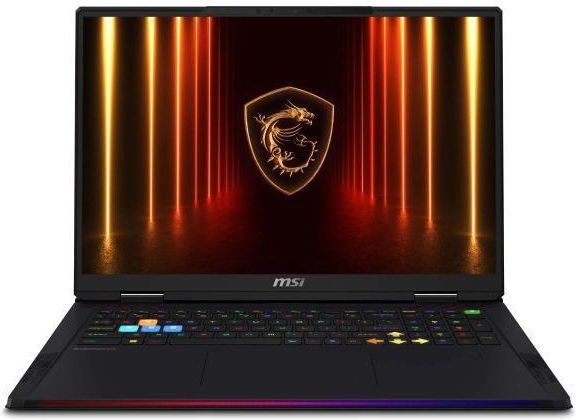 Laptop MSI z ekranem o przekątnej 18 cali i rozdzielczości 3840 x 2400 pikseli, wyposażony w procesor Intel Core Ultra 9-285HX o częstotliwości 2.1 - 5.5 GHz, pamięć RAM DDR5 o wielkości 64 GB. Dysk twardy SSD o pojemności 2 TB. Karta graficzna NVIDIA GeForce RTX 5090. Zainstalowany system operacyjny to Windows 11 Home.