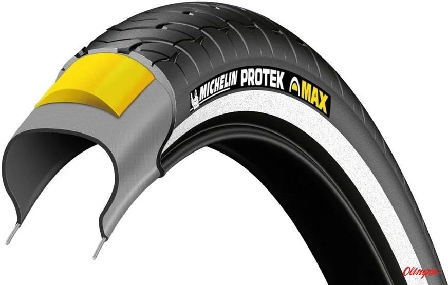 Opona drutowana Protek 28inch 42-622 28x1.60 Reflective Gumwall Dynamo Band E-Bike Ready Opona do wszechstronnego zastosowania: asfalt i utwardzone drogi - Typ opony: clincher Ochrona przed przebiciem: Protek 1 mm Obszar zastosowania: City/Touring Seria: Protek EPI: 22 Access Line - Warstwa chroniąca przed przebiciem o grubości 1 mm zapewnia skuteczną ochronę przed przebiciem w codziennym użytkowaniu - Z paskiem dynamo Ochrona przed przebiciem o grubości jednego milimetra zwiększa niezawodność opony w codziennym użytkowaniu.- Z odblaskowymi paskami na ścianach bocznych.- Ciśnienie robocze: 2-6 barów- Waga: 800 g. MICHELIN ProtekOpona do wszechstronnego użytku na asfalcie i drogach utwardzonych bieżnik optymalizuje opory toczenia mieszanka gumowa zapewnia doskonałą przyczepność ciągły bieżnik w środkowej części i duża liczba rowków na barkach zapewniają doskonałą przyczepność na mokrych, śliskich nawierzchniach EBike Ready do 25 km/hSzczegóły techniczne wkładka chroniąca przed przebiciem o grubości 1 mm zapewnia skuteczną ochronę przed przebiciem w codziennym użytkowaniu Opona zewnętrzna Michelin Protek to opona zewnętrzna o niskich oporach toczenia i doskonałej przyczepności. Dzięki grubej warstwie zapobiegającej wyciekom opona ta zapewnia wysoki poziom ochrony przed przebiciem. Specyfikacja: Kolor: czarny Płeć: unisex Materiał: guma Typ roweru: rower miejski Rozmiar w calach: 28 x 1,60 Rozmiar ETRTO: 42-622 Waga: 839 gramów