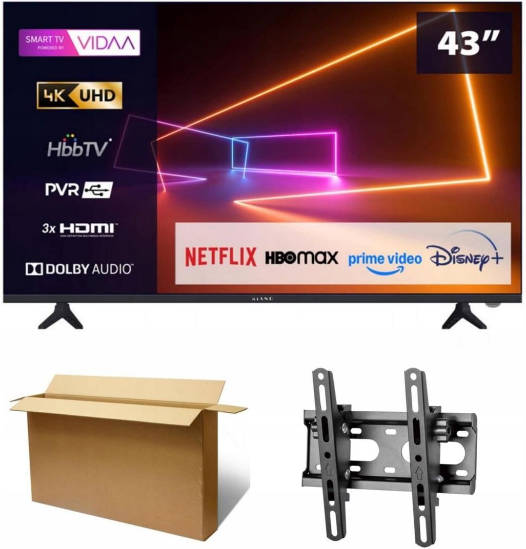 Telewizor Kiano Elegance 43' z Systemem Vidaa Smart TV Bezramkowy┃Smart TV┃Tuner DVB-T2/S2┃System Vidaa Kiano Elegance 43' z systemem VIDAA Nowoczesna rozrywka w zasięgu ręki Nowa odsłona niezawodnego telewizora Kiano Elegance 43' została wzbogacona o system VIDAA Smart TV. Intuicyjna obsługa Czytelne i intuicyjny interfejs, który dopasujesz do siebie i swoich potrzeb. Dostęp do popularnych aplikacji i portali streamingowych Netflix, YouTube, Prime Video, Disney+, TVP i wiele innych. Personalizacja Ekran główny skrojony pod Twoje potrzeby. Płynność i Niezawodność Szybkie, płynne i przyjemne przełączanie pomiędzy aplikacjami i kanałami. Piękno w prostocie Kiano Elegance to telewizory, które nie ustawiają bariery między widzem a rzeczywistością. Niczego nie symulują. Nie są namiastką, eksperymentem ani próbą. To prawdziwe kolory, prawdziwe dźwięki i prawdziwy zachwyt każdego, kto doświadczy ich na żywo. Kiano Elegance to multimedium przyszłości. Telewizory, które przesuwają granice designu, technologii i przyjemności użytkowania. Multimedia dostępne na wyciągnięcie ręki Wykorzystaj pełny potencjał swojego nowego telewizora i uzyskaj łatwy dostęp do ulubionych multimediów dzięki złączu HDMI (High-Definition Multimedia Interface), USB (Universal Serial Bus), udostępnianie ekranu smartfona. Przeglądaj zdjęcia i filmy na dużym ekranie, dzięki czemu w prosty i przyjemny sposób możesz zaprezentować materiały z wakacji czy pracy. Procesor Cortex A53 Sercem urządzenia jest 64-bitowy, czterordzeniowy Cortex-A53 (4 × 1,5 GHz) wspierany przez 1,5 GB RAM i 8 GB pamięci flash – taki zestaw gwarantuje błyskawiczne uruchamianie aplikacji i stabilną pracę systemu. Za grafikę odpowiada nowoczesny Mali-G52 (2EE) MC1, który zapewnia płynne odtwarzanie filmów w wysokiej rozdzielczości, dynamiczne animacje i natychmiastową reakcję interfejsu na każde polecenie Czystość obrazu dzięki pełnej cyfryzacji Zastosowanie nowoczesnej technologii cyfrowego przetwarzania treści gwarantuje stabilny, wyraźny obraz bez zakłóceń. Telewizor bez problemu odczytuje multimedia z nośników USB (Universal Serial Bus), a dostęp do szerokiej oferty programów – w tym kanałów Telewizji Polskiej i innych nadawców – odbywa się w oparciu o aktualne standardy kodowania obrazu, zapewniając wysoką jakość i płynność odtwarzania. Zapomnij o zwykłym LED – czas na D-LED! Technologia Direct LED (Direct Light Emitting Diode) to nowoczesne rozwiązanie, które przewyższa tradycyjne telewizory LED (Light Emitting Diode) pod każdym względem. Zamiast podświetlenia jedynie z krawędzi, diody LED są rozmieszczone równomiernie za całą powierzchnią ekranu, co zapewnia głębsze czernie, wyższy kontrast i realistyczny obraz nawet w najciemniejszych scenach. Dodatkowo D-LED umożliwia precyzyjne lokalne przyciemnianie, dzięki czemu każdy detal zyskuje na wyrazistości. Raz zobaczysz i nie będziesz chciał wrócić do klasycznego LED-a. Wyrazisty kontrast i wyjątkowa ostrość Zobacz więcej dzięki dynamicznemu kontrastowi i podziwiaj ulubione filmy na nowo! Wyjątkowe bogactwo kolorów spersonalizowane tak, jak lubisz, staje się możliwe dzięki nowym telewizorom Kiano z funkcją ustawień własnych. Teraz możesz dostosować parametry kolorów telewizora do swoich indywidualnych preferencji i potrzeb. Niezależnie od tego, czy wolisz intensywne, żywe kolory, czy bardziej stonowane i naturalne odcienie, funkcja ustawień własnych pozwala na pełną kontrolę nad wyglądem obrazu. Jaśniejszy ekran - mniej problemów Nawet w słonecznym pokoju obraz jest wyraźny i pełen szczegółów. Dzięki temu nie trzeba martwić się o to, że promienie słoneczne zakłócą oglądanie ulubionych programów czy filmów. Gaming Funkcja dynamicznego obrazu dla prawdziwych entuzjastów gier. Nie daj się zaskoczyć i zyskaj przewagę dzięki funkcji dynamicznego obrazu. Sport Wyobraź sobie, że twój salon staje się centrum akcji. Wybierz telewizor Kiano i przekształć swoje doświadczenia z oglądania w coś więcej niż tylko zwykłe seansy. Odkryj nowy wymiar rozrywki. Odkryj telewizory Kiano. Kinowe brzmienie w Twoim salonie – technologia DD+ 5.1 Telewizor wyposażono w wysokiej klasy głośniki, które oferują czysty, dynamiczny dźwięk stereo, a dzięki zastosowaniu systemu Clear Sound oraz obsłudze dekodowania Dolby Digital Plus możesz cieszyć się przestrzennym brzmieniem 5.1 – wystarczy podłączyć odpowiedni zestaw audio. Zanurz się w dźwiękach filmu, gry czy koncertu i poczuj emocje tak, jakbyś był w centrum wydarzeń. Smart rozrywka ze Smart TV Telewizor Kiano prawdopodobnie umiesz obsługiwać intuicyjnie jeszcze zanim pojawi się w Twoim domu. Wykorzystujemy system Smart TV oparty na systemie VIDAA. Wszystko jest znajome, jasne i czytelne. Masz do dyspozycji dziesiątki wygodnych narzędzi i pełen przegląd rozrywki: Netflix, YouTube, Facebook, Twitter, SmartTV, WiFi Direct, przeglądarka WWW, nagrywanie i odtwarzanie przez USB, przewodnik po kanałach TV i wiele dodatkowych funkcji. Twój czas, Twoje zasady – Nagrywarka PVR na pokładzie Nie musisz rezygnować z ulubionych programów – dzięki funkcji PVR możesz nagrywać filmy, seriale czy transmisje na zewnętrzny nośnik USB i odtwarzać je wtedy, gdy masz na to czas. Wystarczy podłączyć pendrive lub dysk zewnętrzny, by telewizor stał się Twoim osobistym centrum nagrań. Komfort, elastyczność i pełna kontrola nad tym, co i kiedy oglądasz. Pełna kompatybilność z nowymi standardami nadawania Telewizor obsługuje najnowsze systemy transmisji DVB-T2 i DVB-S2, zapewniając dostęp do szerokiej gamy kanałów naziemnych i satelitarnych w najwyższej jakości. Dodatkowo zgodność z modułami CI oraz CI+ umożliwia korzystanie z płatnych platform telewizyjnych bez konieczności używania dodatkowego dekodera – wszystko w jednym, zgrabnym ur