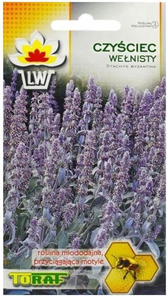 Czyściec wełnisty - Stachys bysantina Dobrze znana bylina miododajna osiągająca wysokość do 40 cm, ceniona za przemiłe w dotyku srebrzyście owłosione gęsto wyrastające liści i drobne kwiaty barwy różowej zebrane w kutnerowate kłosy które nadają się do cięcia i zasuszania. Ładnie zadarnia przestrzeń tworząc mięciutki, srebrzysty dywan. To idealna roślina do kontrastowych zestawień kolorystycznych na rabatach bylinowych, skalnikach i obwódkach. Wymaga miejsc suchych, słonecznych i gleby gliniasto-piaszczystej, kamienistej. Nie potrzebuje silnego nawożenia i podlewania. Jest wystarczająco mrozoodporny.Wysiew nasion IV w inspekcie lub w V-VI wprost do gruntu. Na miejsce stałe wysadzać w VII. Wysokość:30-40 cm Siew:IV - VI Kwitnienie:VII - IX Rozstawa:20x30 cm Oferowane nasiona w opakowaniu o wadze 0,2 g. Oświadczam, że zgodnie z Rozporządzeniem Parlamentu Europejskiego i Rady (UE) 2016/2031 z dnia 26 października 2016 r. w sprawie środków ochronnych przeciwko agrofagom roślin, zmieniającym rozporządzenia Parlamentu Europejskiego i Rady (UE) nr 228/2013, (UE) nr 652/2014 i (UE) 1143/2014 oraz uchylającym dyrektywy Rady 69/464/EWG, 74/647/EWG, 93/85/EWG, 98/57/WE, 2000/29/WE, 2006/91/WE i 2007/33/W do każdej jednostki handlowej dołączony jest paszport roślin. Zamieszczone zdjęcia w naszych ofertach są autorskie i przedstawiają tylko nasze wyhodowane rośliny. Sadzonki roślin w zależności od pory roku mogą się różnić wyglądem np. barwą liści, brakiem ulistnienia, przebarwieniem kory, brakiem części nadziemnej (szczególnie dotyczy bylin) itp. Wszystkie zamówienia realizujemy przez cały rok kalendarzowy wg kolejności zamówień. Rośliny wysyłamy od poniedziałku do czwartku (do godziny 12.00) z gwarancją dotarcia na drugi dzień do klienta. Zapraszamy do skorzystania z naszej szerokiej oferty roślin ozdobnych i nasion.