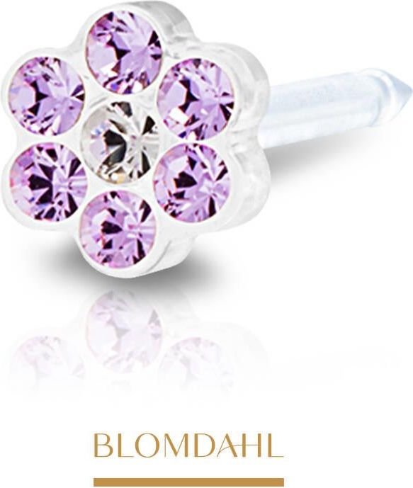 Blomdahl - Kolczyk Daisy Violet/ Crystal 5mm 2szt Hipoalergiczny, sterylny kolczyk do przekłuwania uszu, wykonany z Plastiku Medycznego. Kolczyk znajduje się w sterylnej kasecie. Część ozdobna: kryształy. Średnica części ozdobnej: 5 mm.