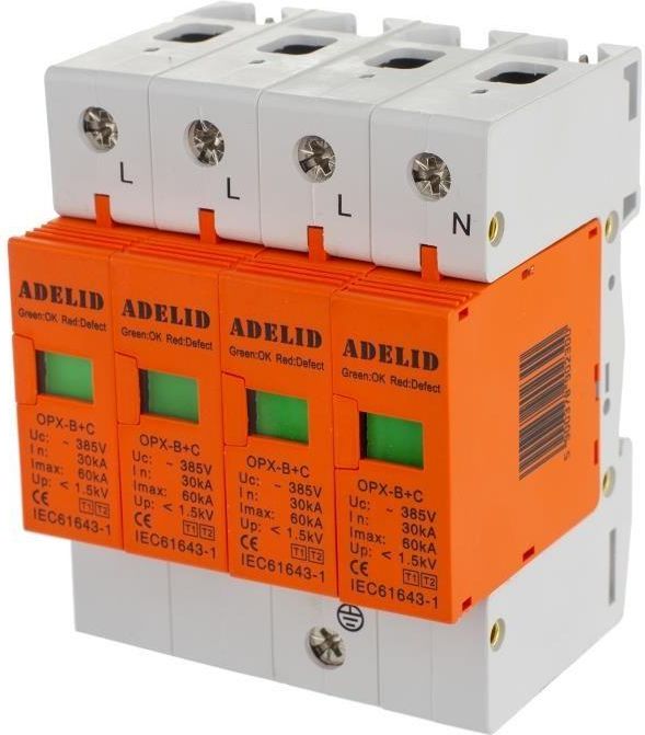 Ochronnik przeciwprzepięciowy 4-polowy, 3-fazowy, klasa B+C+D, 20-65 kA, do montażu na szynę TH35. Nr katalogowy: OPX-4P-B+C+D Ogranicznik przepięć, odgromnik a także ochronnik przepięciowy to urządzenie zaprojektowane do ochrony aparatury elektrycznej przed przejściowymi przepięciami, …