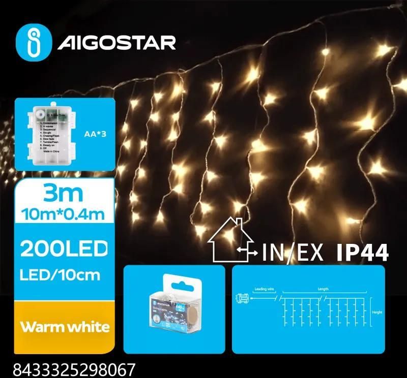 200LED. Odstępy między zawieszeniami 4-4-4-4 20 cm. 50 pasków. 10cm/LED. 8 zmieniających się trybów + pamięć + timer Kolor produktu: Przezroczysty Kolor światła: Ciepła biel Wymiary: 10m*0.4m Napięcie: DC4.5V Stopień ochrony: IP44 Typ baterii/akumulatora: baterie 3AA Kolor produktu: Przezroczysty …