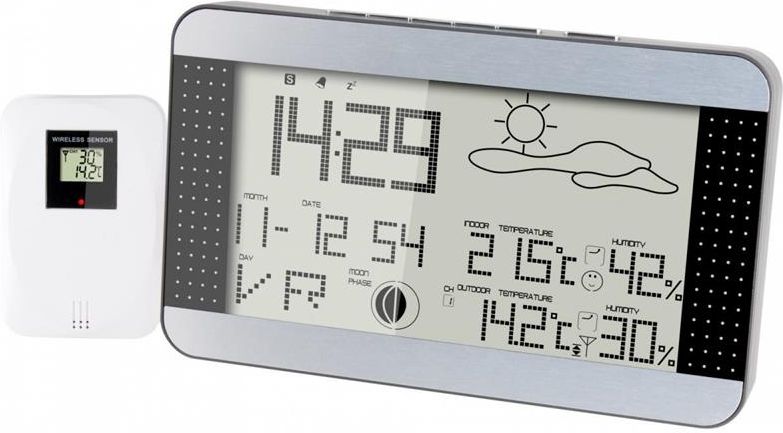Alecto WS-1700 STACJA POGODOWA Z TERMOMETREM HIGROMETREM CZUJNIKIEM LCD BEZPRZEWODOWA Alecto WS-1700 – Twoja domowa prognoza pogody, zawsze pod ręką! 🏡 Planujesz dzień, pracujesz w ogrodzie albo po prostu lubisz wiedzieć, co czeka za oknem? ☔🌞 Dzięki Alecto WS-1700 z bezprzewodowym czujnikiem zewnętrznym masz dostęp do precyzyjnych danych pogodowych bez wychodzenia z domu! 📊 Monitoruj pogodę na bieżąco 🌡️ Pomiar temperatury i wilgotności – wewnątrz i na zewnątrz 🌬️ Ciśnienie atmosferyczne – z prognozą pogody w formie ikon 🌙 Fazy księżyca – ciekawostka dla dużych i małych odkrywców 🔔 Alarmy temperaturowe – powiadomienie o zbyt wysokiej lub niskiej temperaturze 📺 Duży, czytelny wyświetlacz LCD 🖥️ Wyświetlacz 7,7” – wszystko widoczne na pierwszy rzut oka 📅 Data, dzień tygodnia i godzina – z funkcją budzika 💡 Ikony komfortu i prognozy pogody – szybka interpretacja warunków 💾 Pamięć min./maks. wartości – dla entuzjastów zmian klimatycznych 📡 Bezprzewodowy czujnik zewnętrzny 🔋 Zasilany bateryjnie (baterie nie są dołączone) 📡 Zasięg do 30 m – stabilne połączenie przez ściany 🧱 Do montażu na ścianie lub ustawienia na półce 🔧 Łatwa obsługa i szybka instalacja ⚙️ Intuicyjna konfiguracja – gotowe do użycia w kilka minut 📎 Proste sterowanie bez aplikacji czy Wi-Fi 🌍 Obsługa wielu języków – w tym polskiego 📐 Dane techniczne Kolor: srebrny Wymiary stacji: 22,1 × 13,2 × 2,7 cm Wymiary czujnika: 9 × 6,3 × 2,8 cm Komunikacja: RF 433 MHz Zasięg: do 30 m (w budynku), do 100 m (na otwartej przestrzeni) Waga: 410 g Gwarancja: 24 miesiące 🌈 Alecto WS-1700 to nie tylko praktyczne narzędzie, ale też doskonała zabawa i nauka dla całej rodziny! Śledź pogodę lokalnie, planuj z wyprzedzeniem i ciesz się technologią, która działa dla Ciebie 🌤️📲 📦 Zestaw zawiera Stację bazową (wewnętrzną) Alecto WS-1700 Bezprzewodowy czujnik zewnętrzny 🛡️ 24-miesięczna gwarancja Kupując ten produkt, otrzymujesz 24-miesięczną gwarancję, która zapewnia Ci spokój i pewność użytkowania przez długi czas. 👷 Wsparcie techniczne Masz jakiekolwiek pytania dotyczące sprzętu? Nasi pracownicy czekają na Twoją wiadomość i chętnie udzielą odpowiedzi na każde pytanie w godzinach pracy firmy. 💬 Nie czekaj! Zamów teraz i ciesz się nowoczesnym sprzętem w przystępnej cenie!