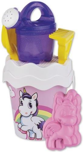O produkcie w skrócie Zestaw zabawek do piasku dla dziewczynek Wysoka jakość wykonania Wyprodukowane we Włoszech W zestawie: wiaderko, pokrywka pełniąca jednocześnie rolę sitka, żółte grabki i łopatka, foremka w kształcie jednorożca, fioletowa konewka zdobiona brokatem Zabawki wykonano z tworzywa …