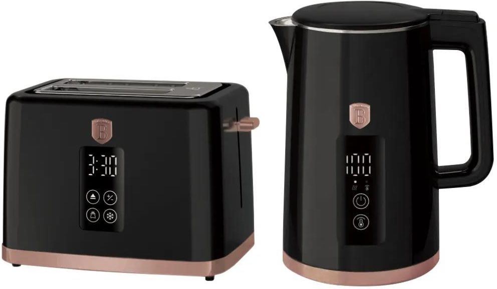 Elegancki nowoczesny czajnik elektryczny oraz toster do grzanek firmy Berlinger Haus z linii Black Rose Collection. Zestaw idealnie będzie pasował do naczyń i akcesoriów kuchennych tej firmy. Designerski wygląd to niezaprzeczalny atut tego kompletu. Specyfikacja czajnika Pojemność: 1,7 L Napięcie: 220-240 V ~ 50/60 Hz Moc: 2200 W Materiał: Stal nierdzewna 18/10, tworzywo sztuczne Kolor: czarny mat Cechy Regulacja Temperatury dotykowymi przyciskami: Wyświetlacz LCD umożliwia precyzyjne ustawienie różnychpoziomów temperatury odpowiednich dla delikatnych zielonych i białych herbat po wyższe do czarnych naparów. Podstawa 360°: Obrotowa podstawa zapewnia pełną swobodę ustawienia czajnika. Funkcja Utrzymywania Ciepła: Utrzymuje wodę w optymalnej temperaturze dla różnych napojów Bezpieczeństwo: Posiada ochronę przed gotowaniem bez wody. Konstrukcja czajnika z podwójnymi ściankami i wnętrze ze stali nierdzewnej zwiększają trwałość. Ten czajnik to idealny wybór dla koneserów chińskiej herbaty, pozwalając na wygodne przygotowanie naparów o perfekcyjnej temperaturze Kluczowe cechy cyfrowego tostera cyfrowego 1. Trwała i stylowa konstrukcja Materiał: Wykonany z połączenia stali nierdzewnej i wytrzymałej obudowy z tworzywa sztucznego dla długotrwałej wydajności. Kolor: Eleganckie czarne wykończenie z elementami w kolorze różówego złota dodaje śmiałego, ale wyrafinowanego wyglądu każdej kuchni. 2. Cyfrowy wyświetlacz LED Cyfrowy wyświetlacz LED zapewnia wyraźną, precyzyjną kontrolę nad procesem tostowania, zapewniając za każdym razem spójne rezultaty. 3. Wielofunkcyjność dla maksymalnej wygody Funkcja anulowania: Natychmiastowe zatrzymanie procesu tostowania. Funkcja rozmrażania: szybkie opiekanie zamrożonego pieczywa z równomiernym zrumienieniem. Funkcja podgrzewania: podgrzewanie wcześniej opiekanych kromek bez dodatkowego zrumienienia. 4. Regulowane poziomy opiekania Dostosuj opiekanie za pomocą 7 ustawień opiekania, co pozwoli Ci uzyskać preferowany poziom chrupkości, od lekko złotego do idealnie chrupkiego. 5. Antypoślizgowa podstawa zapewniające stabilność Antypoślizgowa podstawa zapewnia, że toster pozostaje bezpiecznie na swoim miejscu podczas użytkowania, zwiększając bezpieczeństwo i niezawodność Twojej kuchni. 6. Wyjmowana tacka na okruchy ułatwiająca czyszczenie Wysuwana tacka na okruchy zbiera okruchy, dzięki czemu sprzątanie jest szybkie i proste, a blat kuchenny pozostaje uporządkowany. Specyfikacja Zasilanie: 220-240V,50/60Hz Moc: 930W Dlaczego warto kupić ten zestaw? Energooszczędność: Moc czajnika 2200 W zapewnia szybkie gotowanie, a moc tostera 930 W gwarantuje równomierne, niezawodne rezultaty opiekania. Łatwość użytkowania: Intuicyjne wyświetlacze LED i przyjazne dla użytkownika elementy sterujące upraszczają codzienne czynności w kuchni. Elegancki design: Wykończenie w kolorze czarnym i różowego złota dodaje elegancji i wyrafinowania Twojemu blatowi. Wszechstronne opiekanie: Dostosuj poziom zrumienienia i wykorzystaj tryby rozmrażania lub podgrzewania, aby za każdym razem uzyskać idealnie zrumienione śniadanie. Bezpieczne i trwałe: Uchwyty Stay-cool i automatyczne wyłączanie zapewniają bezpieczeństwo.