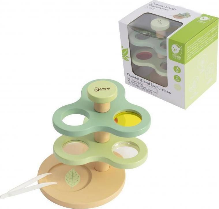 Kod produktu: 11187 Drewniany Mikroskop 2w1 Lupa "Eksploracja świata przyrody" od CLASSIC WORLD to świetna zabawa dla małych odkrywców. Ta mikroskopijna zabawka zawiera wklęsłe lustra, szkło powiększające, pryzmaty i kolorowe soczewki. Świetny sposób na pobudzenie dziecięcego zainteresowania nauką i odkrywaniem magicznych cudów natury. Charakterystyka Zabawka posiada: kolorowe soczewki, pryzmaty, szkło powiększające, (czerwone) lustra wklęsłe Wykonane z najwyższej jakości materiałów - bezpiecznych dla Twojego dziecka Zabawka wykonana została z drewna lakierowanego, oraz pomalowana nietoksycznymi farbami. Jest całkowicie bezpieczna dla dzieci Świetny upominek dla dziecka, który zapewni długie godziny zabawy Zapakowany w eleganckie pudełko idealne na prezent Zabawka rozwija koordynację ruchową umiejętność rozpoznawania kolorów i kształtów wyobraźnie ciekawość zręczność Eko zabawki skierowane są już dla najmłodszych dzieci, które wykonuje się z całkowicie naturalnych, biodegradowalnych oraz hipoalergicznych materiałów, dzięki czemu są one w stu procentach bezpieczne i nieszkodliwe nie tylko dla samego środowiska, ale także i dla Twojej pociechy. Producent - Classic WorldWiek - od 3 latPłeć - chłopiec/dziewczynkaMateriał - drewnoMateriał wykonania - Drewnokolory - wielokolorowyWymiary produktu - 14,3 x 13,1 x 13,9 (cm)Wymiary opakowania - 16 x 12 x 16 (cm)Produkt wprowadzony do obrotu na terenie UE przed 13.12.2024 - Tak NatiKids – Zabawki dla dzieci od renomowanych producentów W sklepie internetowym NatiKids znajdziesz szeroki wybór zabawek dla dzieci od renomowanych producentów, które gwarantują najwyższą jakość, bezpieczeństwo i niezapomnianą zabawę. Oferujemy produkty dopasowane do różnych grup wiekowych, wspierające rozwój i kreatywność maluchów. Zabawki najwyższej jakości – Bezpieczna zabawa dla Twojego dziecka Zabawki dostępne w NatiKids pochodzą od sprawdzonych i uznanych marek, które stawiają na bezpieczeństwo i trwałość swoich produktów. Wszystkie zabawki są wykonane z materiałów spełniających surowe normy jakości, co daje pewność, że Twoje dziecko bawi się bezpiecznie. Szeroka oferta zabawek – Edukacja i rozwój przez zabawę W NatiKids oferujemy różnorodny asortyment zabawek – od kreatywnych klocków, przez zabawki edukacyjne, aż po interaktywne gry i układanki. Nasze zabawki wspierają rozwój motoryczny, umysłowy oraz wyobraźnię dziecka, zapewniając jednocześnie mnóstwo radości. NatiKids – Zabawki, które inspirują Odkryj zabawki dla dzieci renomowanych producentów w NatiKids i zapewnij swojemu dziecku nie tylko rozrywkę, ale i narzędzia do nauki i rozwoju. Zaufaj jakości i wybierz zabawki, które pokochają zarówno dzieci, jak i rodzice!