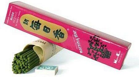 Kadzidełka różane mają słodki kwiatowy aromat. Tworzą romantyczny nastrój, sprzyjają pozytywnym emocjom. Ich zapach jest naturalny i przywołuje na myśl różany ogród lub wielki bukiet róż w wazonie. Doskonałe jako dodatek do bukietu kwiatów dla dziewczyny i jako element tworzący atmosferę podczas kolacji we dwoje. Opakowanie zawiera 50 kadzideł i ceramiczna podstawkę Czas spalania: ok. 35 min. Morning Star Seria japońskich kadzidełek MorningStar to kolekcja osiemnastu szlachetnych zapachów najwyższej jakości. Znana jest na całym świecie. Specjalna technologia produkcji oraz brak bambusowego patyczka, sprawiają, że ulatnia się czysty aromat. Dlatego są to kadzidełka odpowiednie również dla tych osób, które nie lubią dymu. Różnorodne zapachy mogą znaleźć wiele zastosowań: w domu, na wakacjach, w sklepie, w gabinecie kosmetycznym, czy do praktyki medytacji. Ich zapach zmienia atmosferę i wywołuje odprężenie i uspokojenie. Ciepłe zapachy (cynamon, musk) rozgrzeją zimowe wieczory, a zapachy świeże (yuzu, mimoza) orzeźwią letnie popołudnia. Kadzidełka firmy Nippon Kodo są pod ścisłą kontrolą jakości w całym procesie produkcji i spełniają japońskie i europejskie normy.