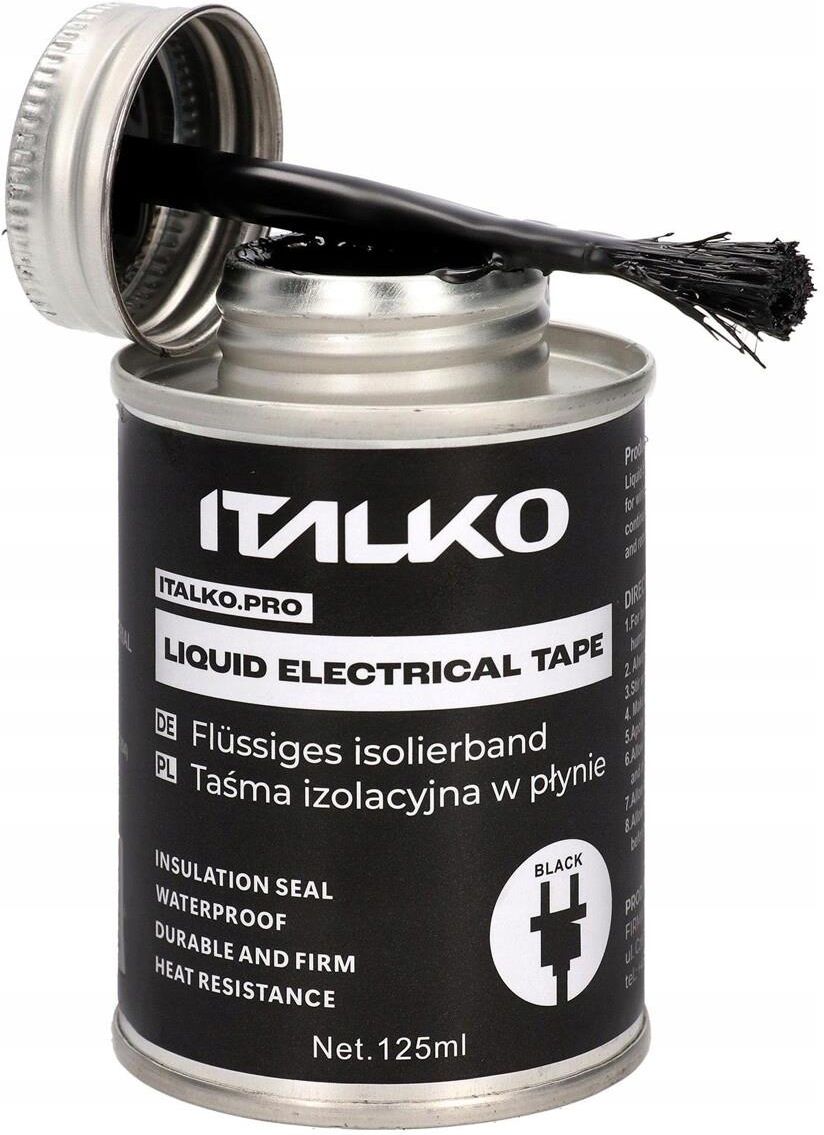 TAŚMA IZOLACYJNA W PŁYNIE CZARNA 125ML MARKI ITALKO Płynna izolacja to innowacyjny produkt, który służy do izolacji przewodów elektrycznych. Jest to płynna substancja, która po wyschnięciu tworzy mocną, elastyczną i wodoodporną powłokę izolującą. Płynna izolacja może być stosowana do izolacji przewodów elektrycznych o różnych przekrojach i zastosowaniach. Płynna izolacja do przewodów ma następujące właściwości charakterystyczne: Mocne przyleganie do przewodów elektrycznych Wodoszczelność Elastyczność po wyschnięciu Odporność na ogień Odporność na wysoką temperaturę Płynna izolacja do przewodów może być wykorzystywana do różnych zastosowań, takich jak: Izolacja przewodów elektrycznych w trudno dostępnych miejscach Izolacja przewodów elektrycznych w urządzeniach elektronicznych Uszczelnianie połączeń przewodów elektrycznych Izolacja przewodów elektrycznych w instalacjach elektrycznych Izolacja przewodów elektrycznych na zewnątrz Zaletą izolacji jest możliwość szybkiego zaplikowania np. na skręcone ze sobą przwody mocząc bezpośrednio w puszce. Pędzel w pokrywce pozwala na łatwą aplikację produktu oraz zapewnia równomierne rozprowadzenie go na powierzchni. Płynna izolacja do przewodów może być stosowana zarówno wewnątrz, jak i na zewnątrz. Jest odporna na działanie czynników atmosferycznych, takich jak deszcz, śnieg i promieniowanie UV.