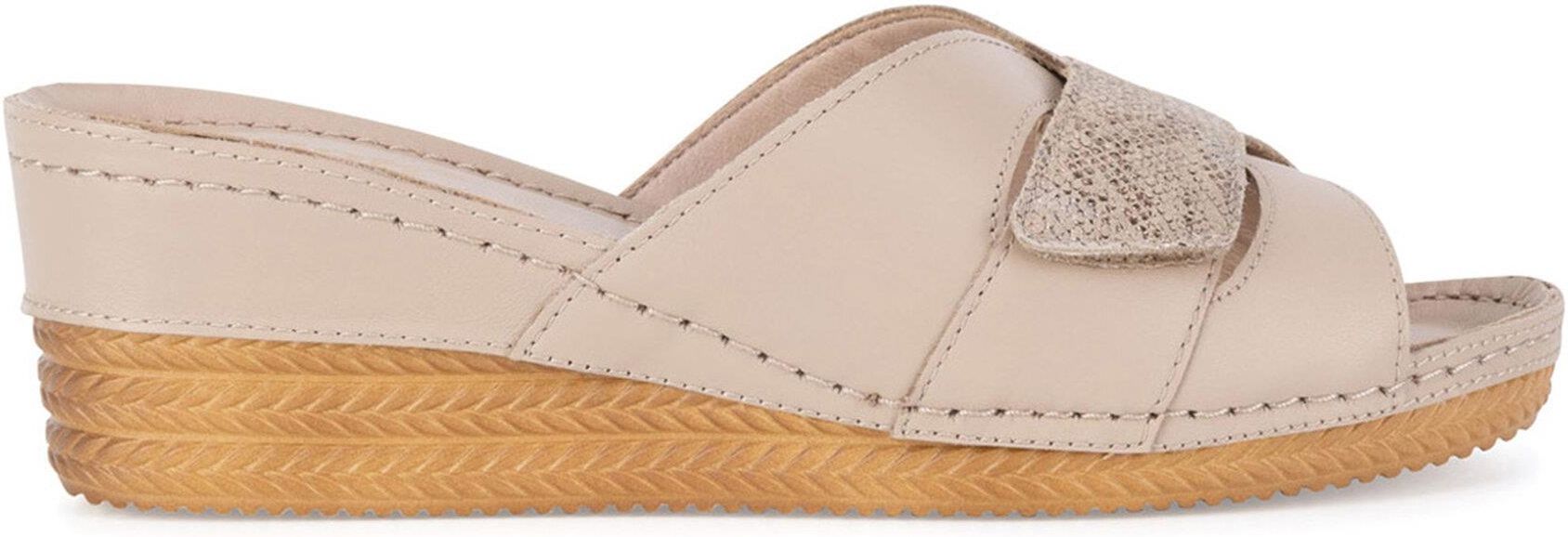 Klapki na koturnie Go Soft to idealny wybór dla kobiet, które cenią sobie elegancję połączoną z komfortem noszenia. Wykonane z miękkiej skóry i utrzymane w klasycznym, beżowym kolorze, staną się subtelnym uzupełnieniem każdej casualowej stylizacji. Zapięcie na rzep pozwala na szybkie i precyzyjne …