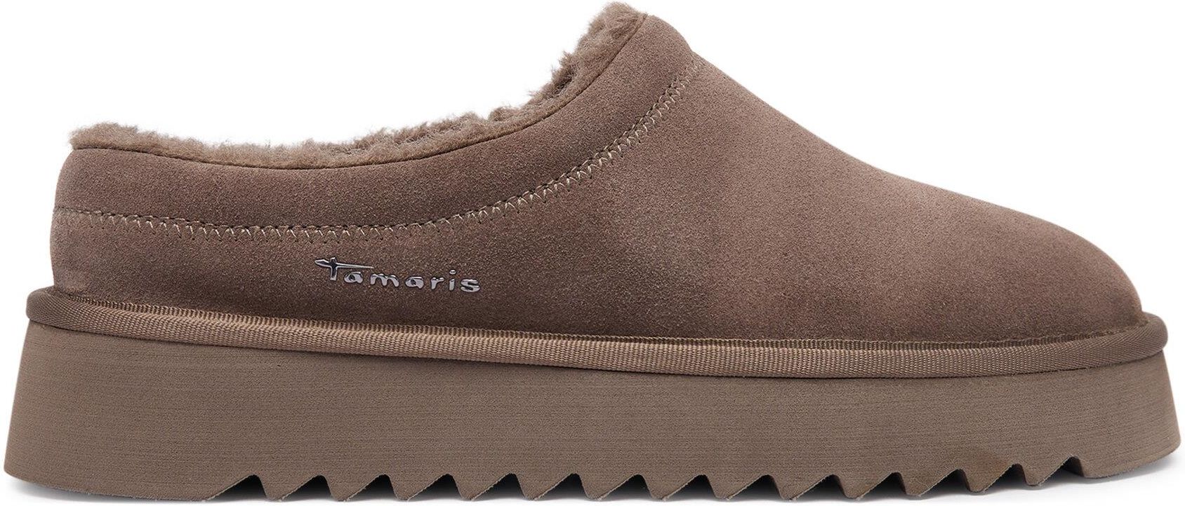 Klapki śniegowce Tamaris to połączenie wygody i stylu, które idealnie sprawdzi się w chłodniejsze dni. Wykonane ze skóry naturalnej, oferują nie tylko trwałość, ale także elegancki wygląd, który podkreśli każdą zimową stylizację. Ich klasyczny, beżowy odcień dodaje im uniwersalności i sprawia, że są łatwe do zestawienia z różnymi elementami garderoby. Wnętrze i wkładka klapek zostały starannie ocieplone, co zapewnia maksymalny komfort termiczny. Miękkie futerko wewnątrz sprawia, że każde założenie tych śniegowców to prawdziwa przyjemność. Ocieplenie gwarantuje utrzymanie ciepła, nawet w najzimniejsze dni, co czyni je idealnym wyborem na sezon zimowy. Klapki Tamaris wyróżniają się nowoczesnym designem i solidną podeszwą, która zapewnia doskonałą przyczepność na śliskich nawierzchniach. Dzięki temu, są nie tylko stylowe, ale także praktyczne i bezpieczne. Te śniegowce to doskonały wybór dla osób, które nie chcą rezygnować z elegancji na rzecz komfortu. Dzięki użyciu najwyższej jakości materiałów i dbałości o detale, klapki Tamaris oferują nie tylko modny wygląd, ale także niezrównaną wygodę i trwałość. Model: 1-27300-45/341 Kolor: 341 Taupe Cholewka: Skóra naturalna zamszowa Wnętrze: Ocieplina Wkładka: Ocieplina Podeszwa: Płaska Grubość podeszwy: 4 cm Wysokość całkowita buta: 12 cm Wysokość obcasa: 4 cm Rodzaj zapięcia: Wsuwane Kolor dominujący: Taupe Nosek: Okrągły Opakowanie: Pudełko